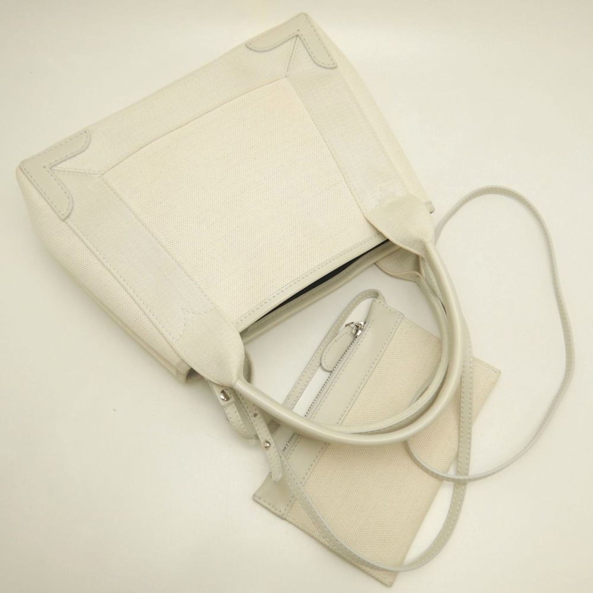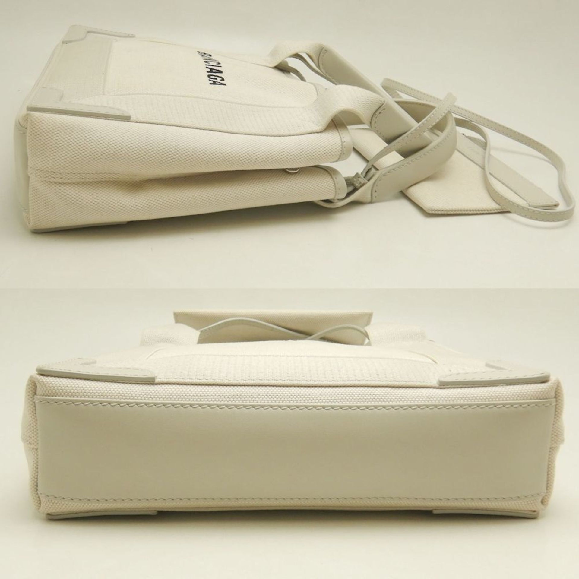 BALENCIAGA Navy Cabas XS Handbag (390346) in Ivory Canvas and Calfskin, Women\'s (253268)