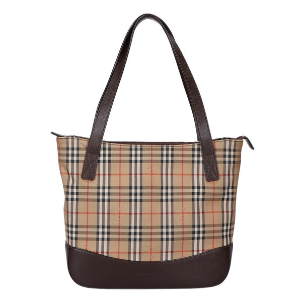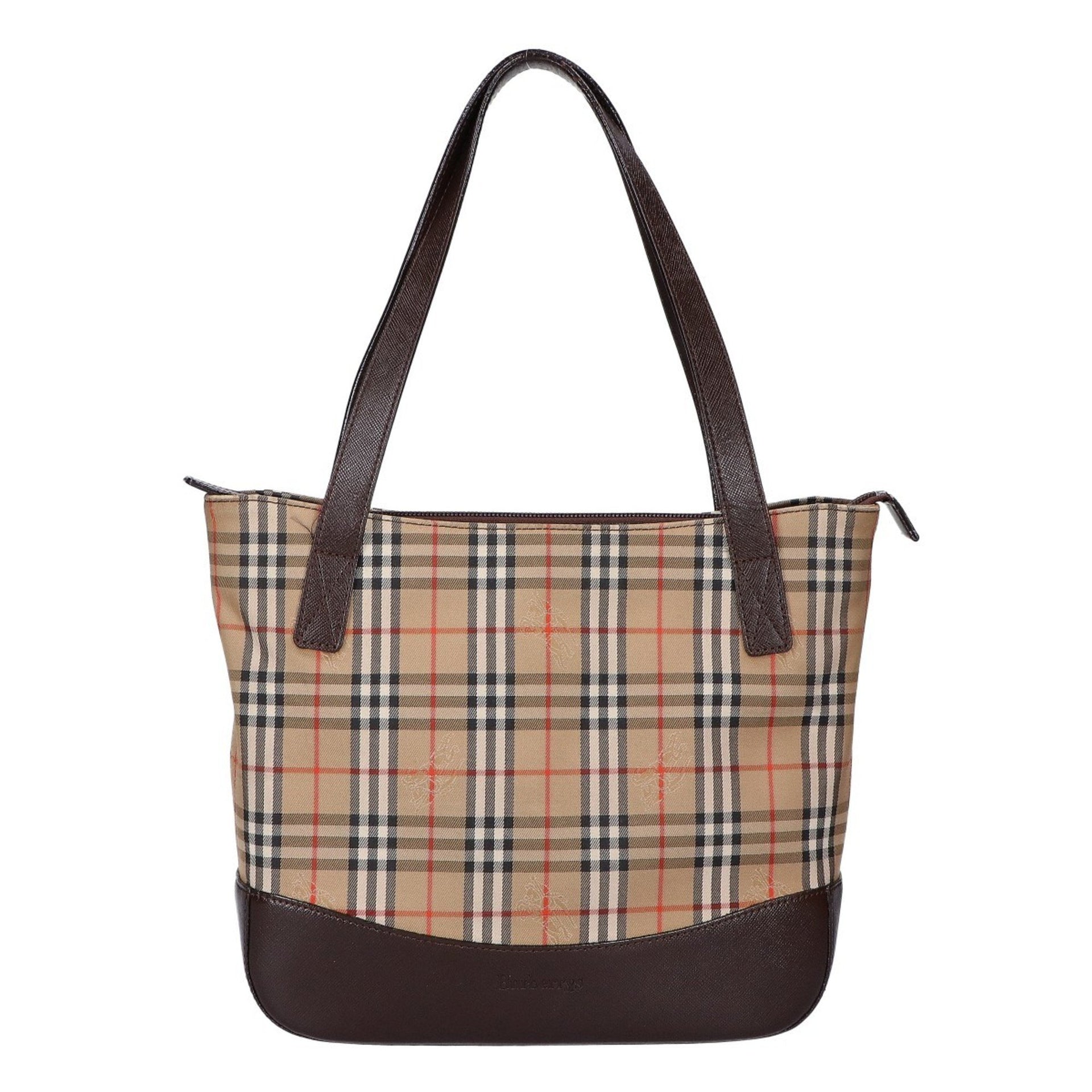 BURBERRY Nova Check x Leather Handbag Beige Brown Women\'s