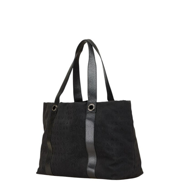 BVLGARI Logomania Handbag in Black Canvas and Leather for Women