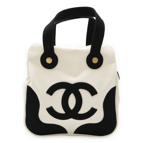 CHANEL Coco Mark Marshmallow Bag Tote Handbag Canvas Ivory White Black A24224