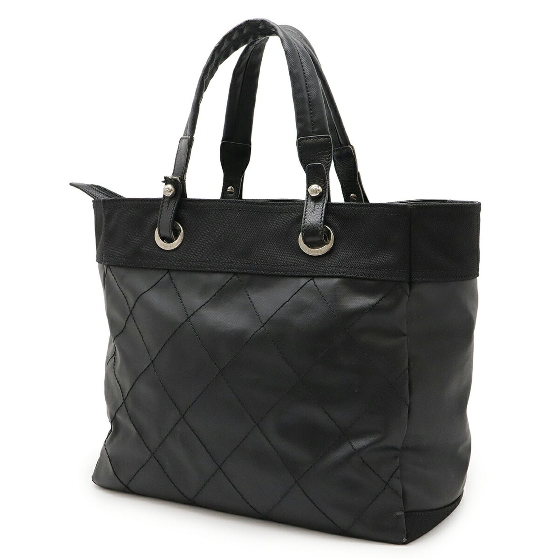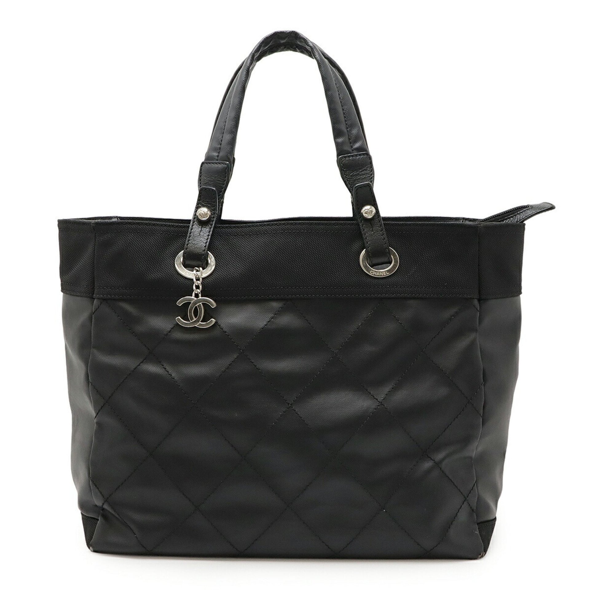 CHANEL Paris-Biarritz Tote MM Bag, Handbag, Coated Canvas, Black, A34209