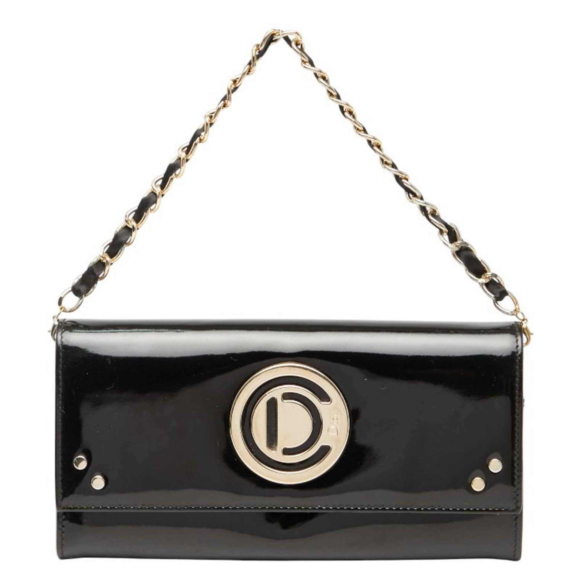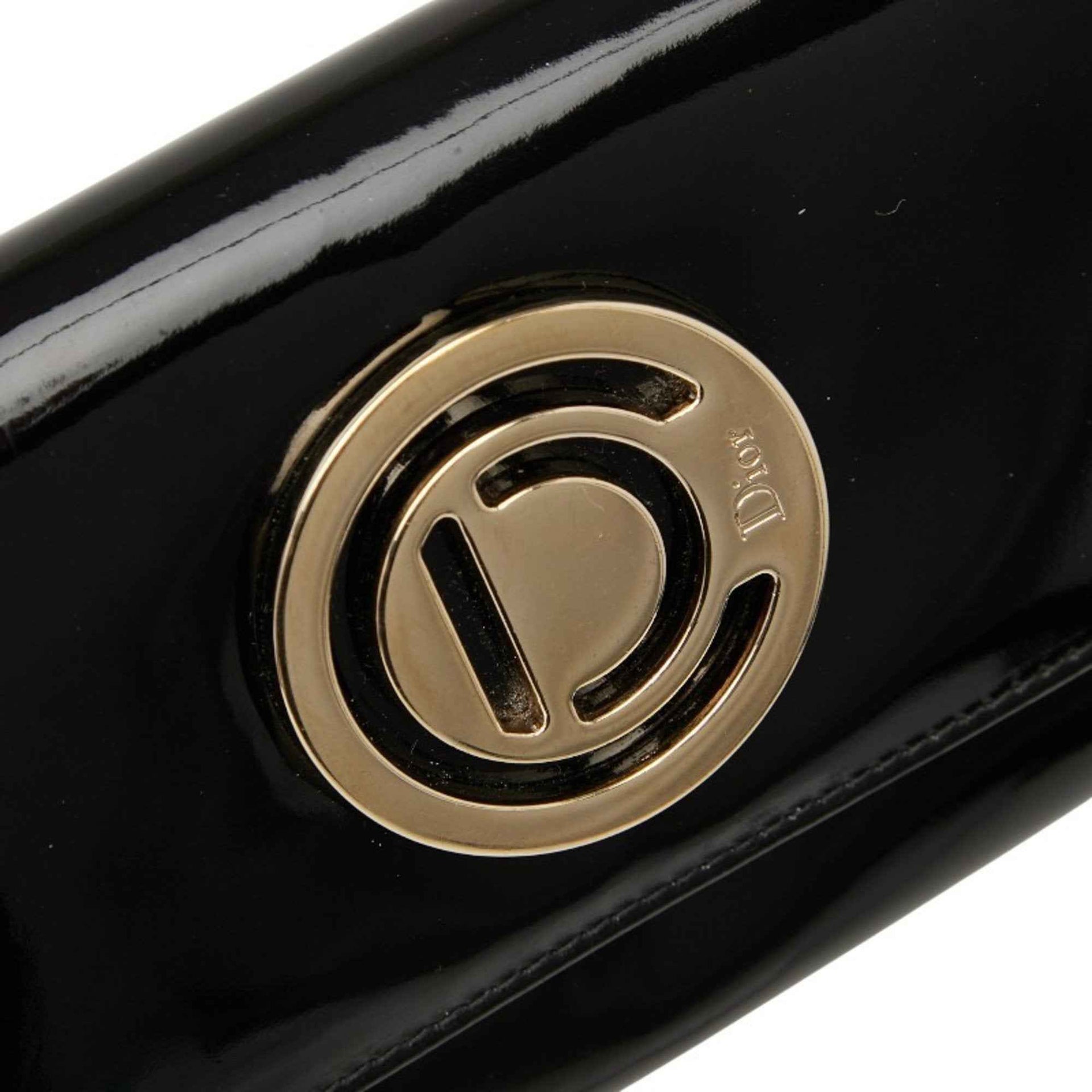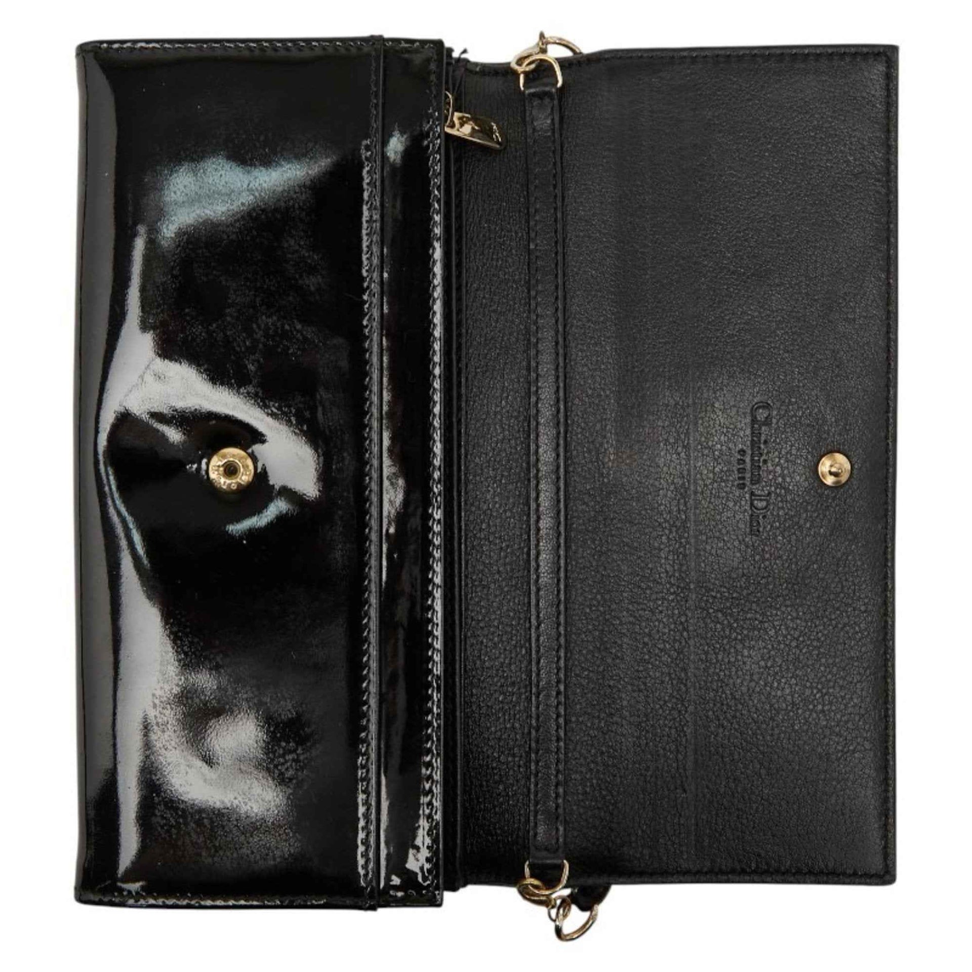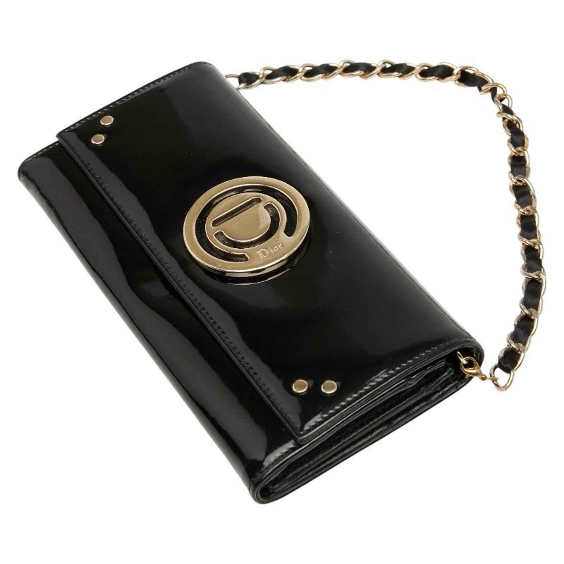 Christian Dior Dior logo chain wallet, long handbag, black and gold patent leather, women\'s,