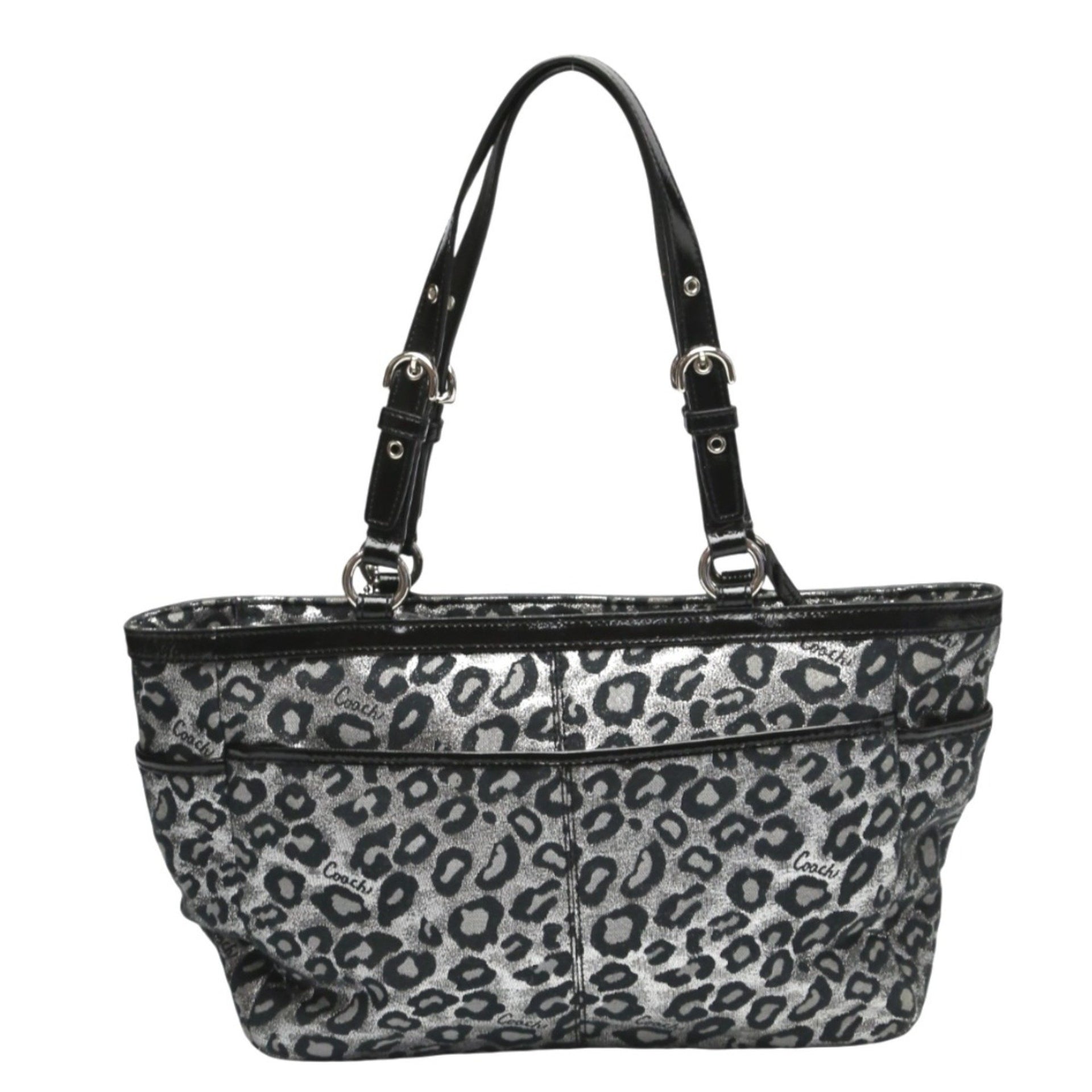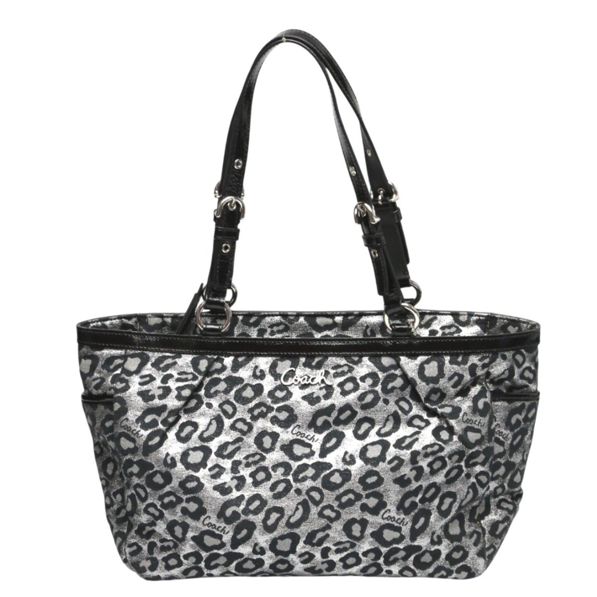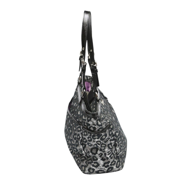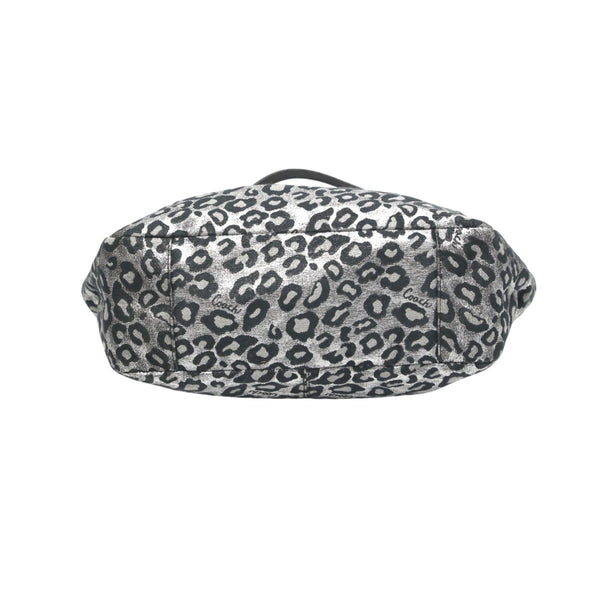 Coach handbag, tote bag, shoulder leopard print canvas, F17675, silver and black