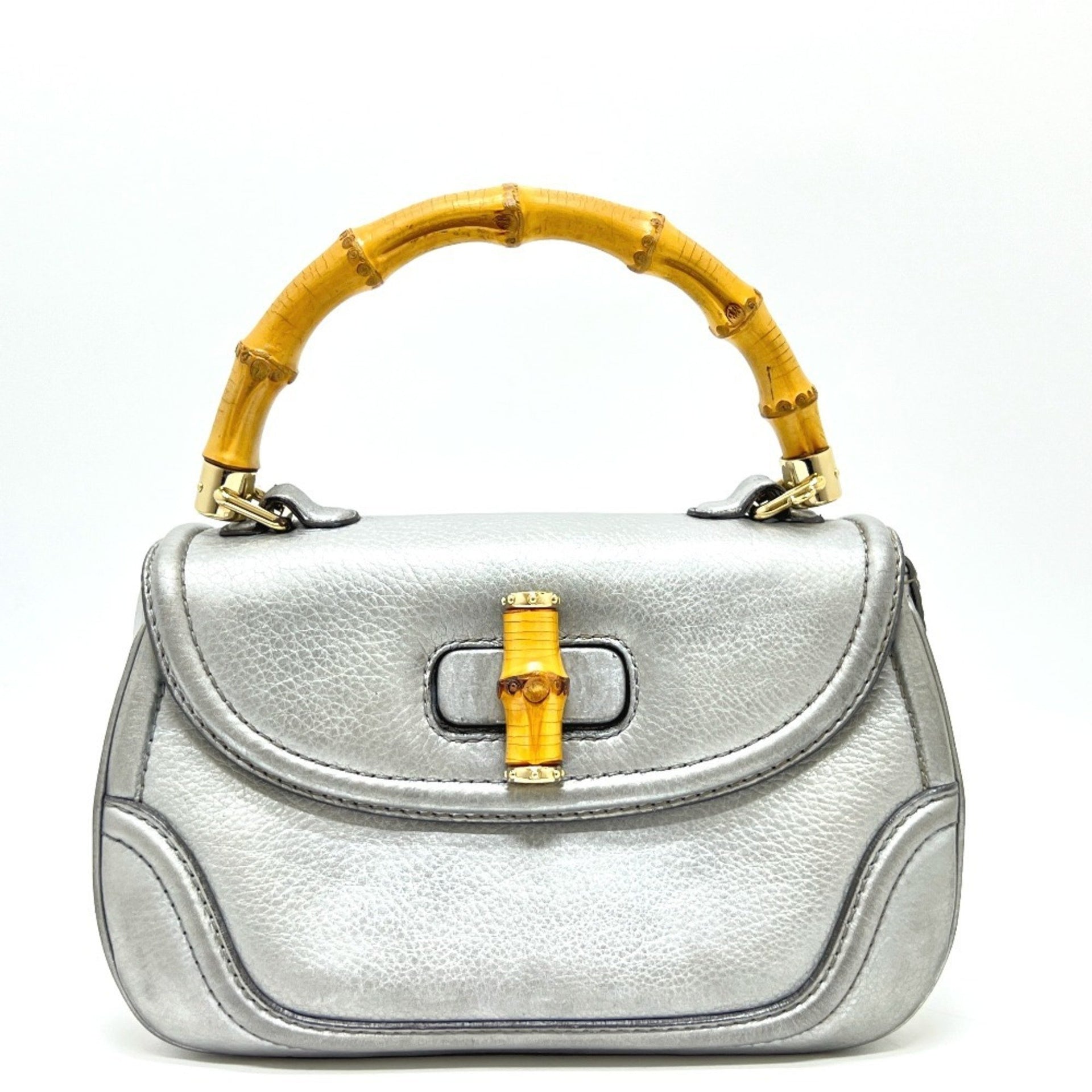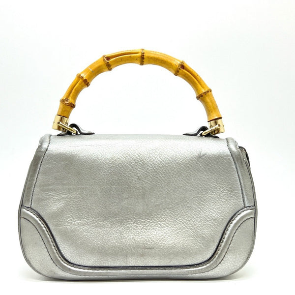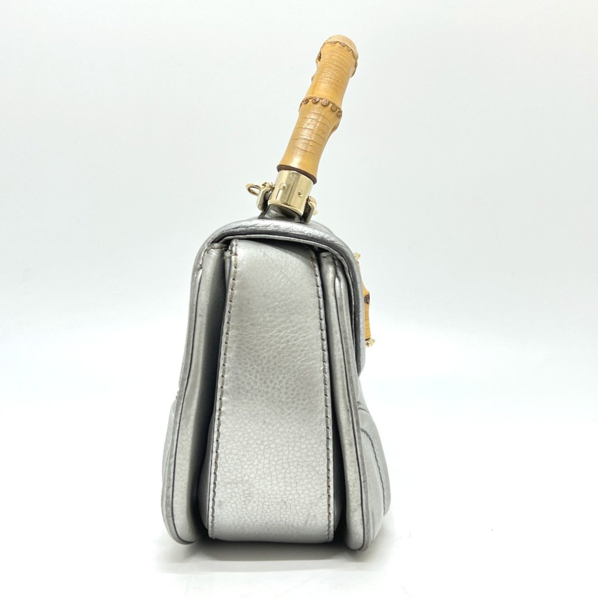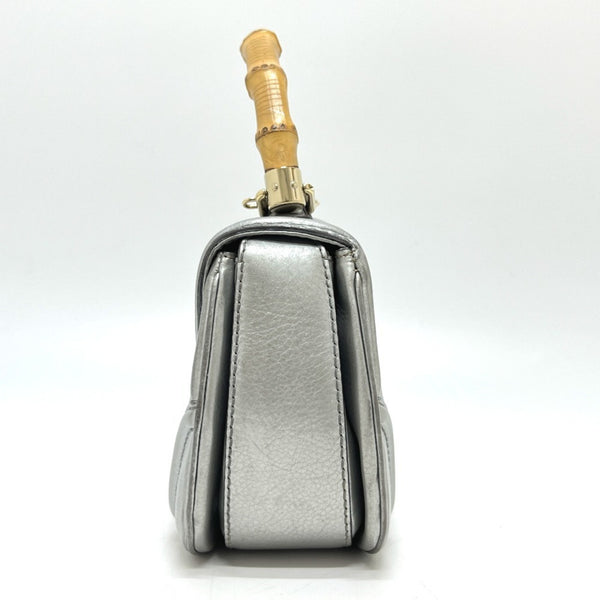 GUCCI 254884 New Bamboo Handle Handbag Leather Women\'s Silver