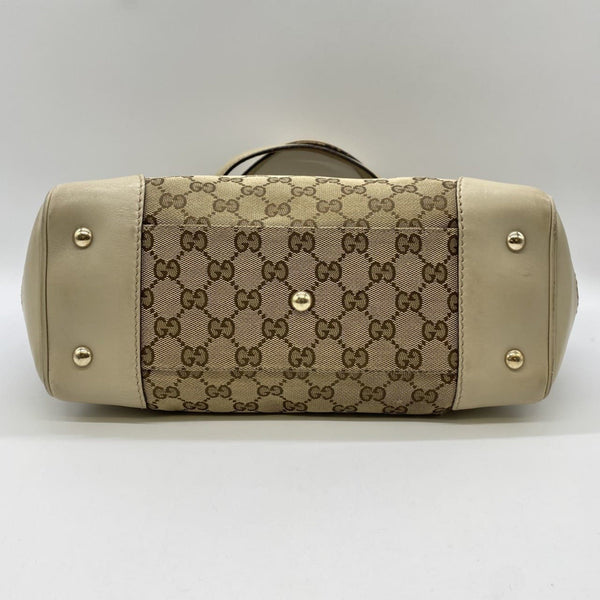 GUCCI 257061 Tote Bag/Handbag in GG Canvas and Sherry Leather (Beige) for Men Women