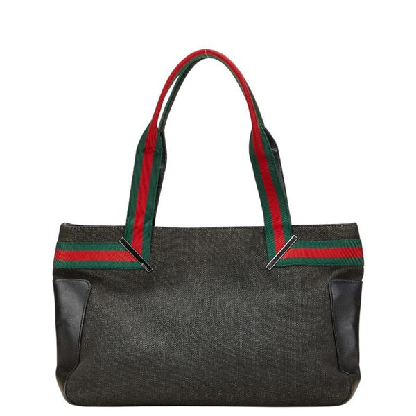 Gucci Sherry Line Tote Bag Handbag 73983 Black Denim Leather Women\'s GUCCI