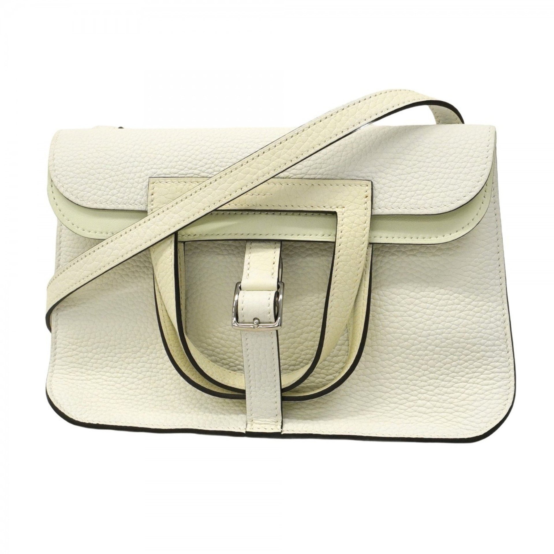 Hermes Hermès Arzan 25 Handbag, Taurillon Clemence Leather, New White, Vert Fizz, B Stamp, 2-Way Bag, Women\'s, P1668726