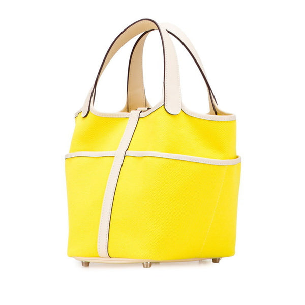 Hermès Picotin Lock Cargo PM Handbag in Jaune Citron, Nata, Yellow, Ivory, Swift Leather, Toile Goélan, Women\'s HERMES