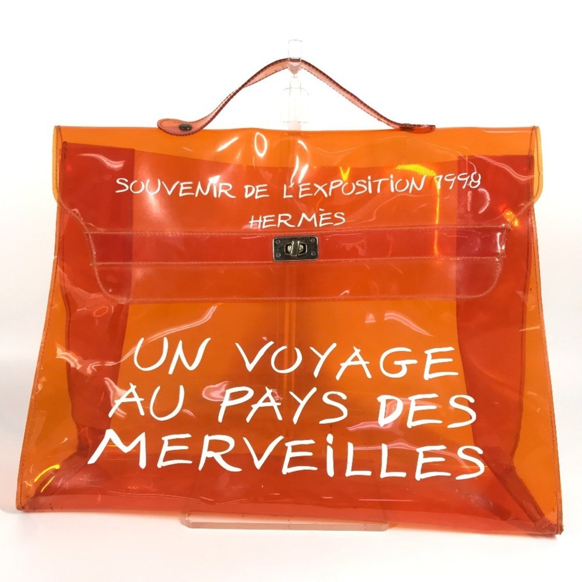 HERMES Vinyl Kelly Tote Bag, Handbag, Vinyl, Women\'s, Orange