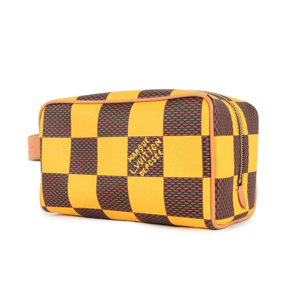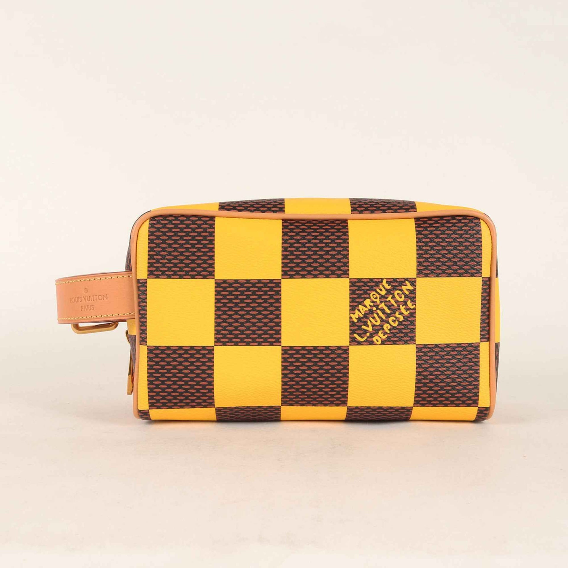 LOUIS VUITTON 2024 Spring/Summer Damier Pop Rocker Dopp Kit Handbag (N40567) Brown/Yellow Men\'s
