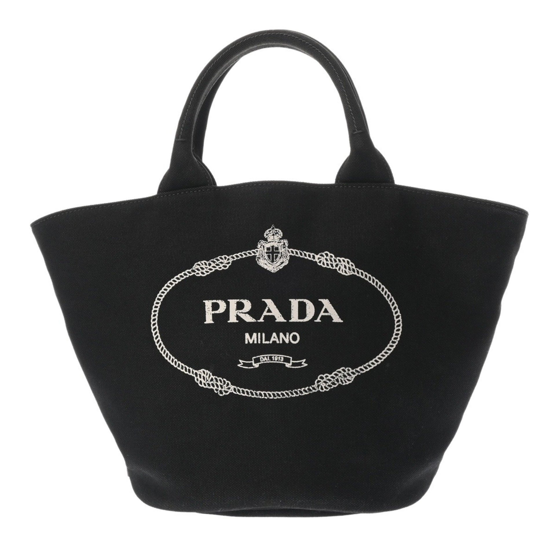 PRADA Canapa Fabric Handbag, Black, 1BG186, Women\'s Canvas Tote Bag