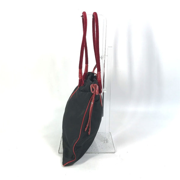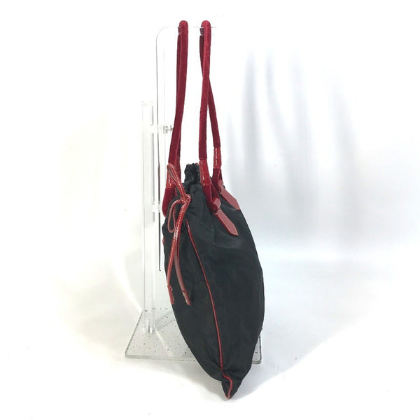 Prada Two-Tone Logo Drawstring Bag with Triangle Logo, Plaque, Tote Bag, Shoulder Handbag, Enamel, Nylon, Women\'s, Black