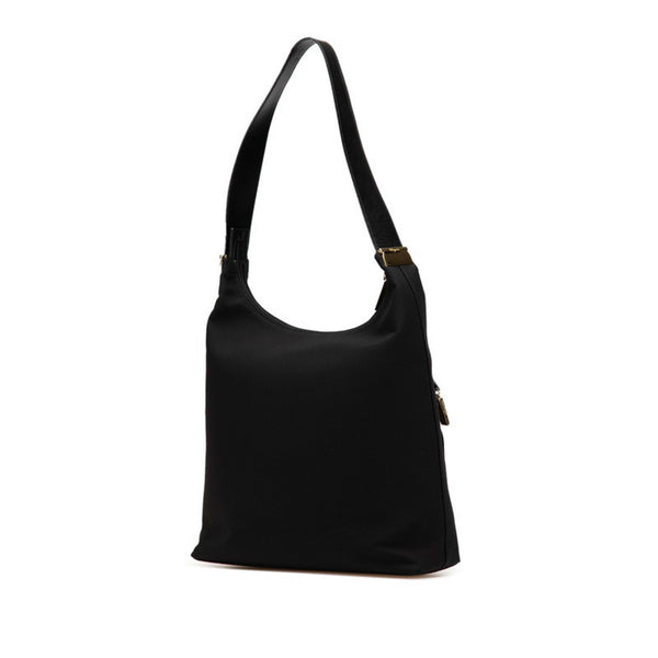 Salvatore Ferragamo handbag in black canvas and leather for women.