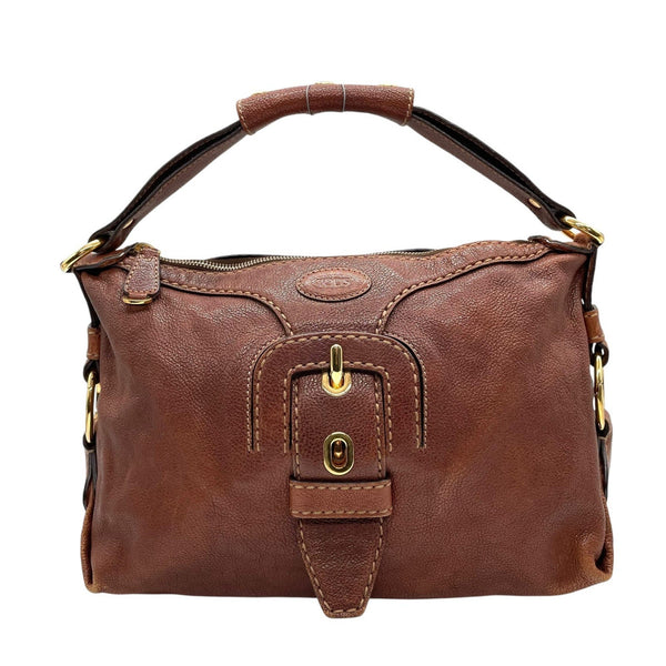 Tod\'s Leather Handbag, Brown, Gold Hardware, Stitching Design, B4