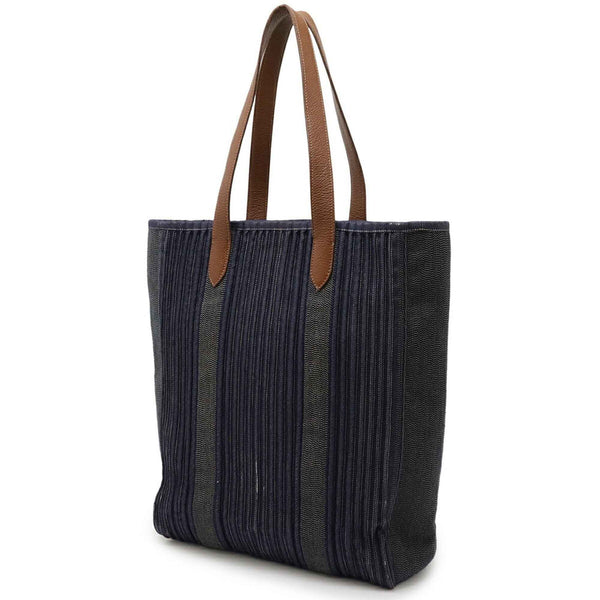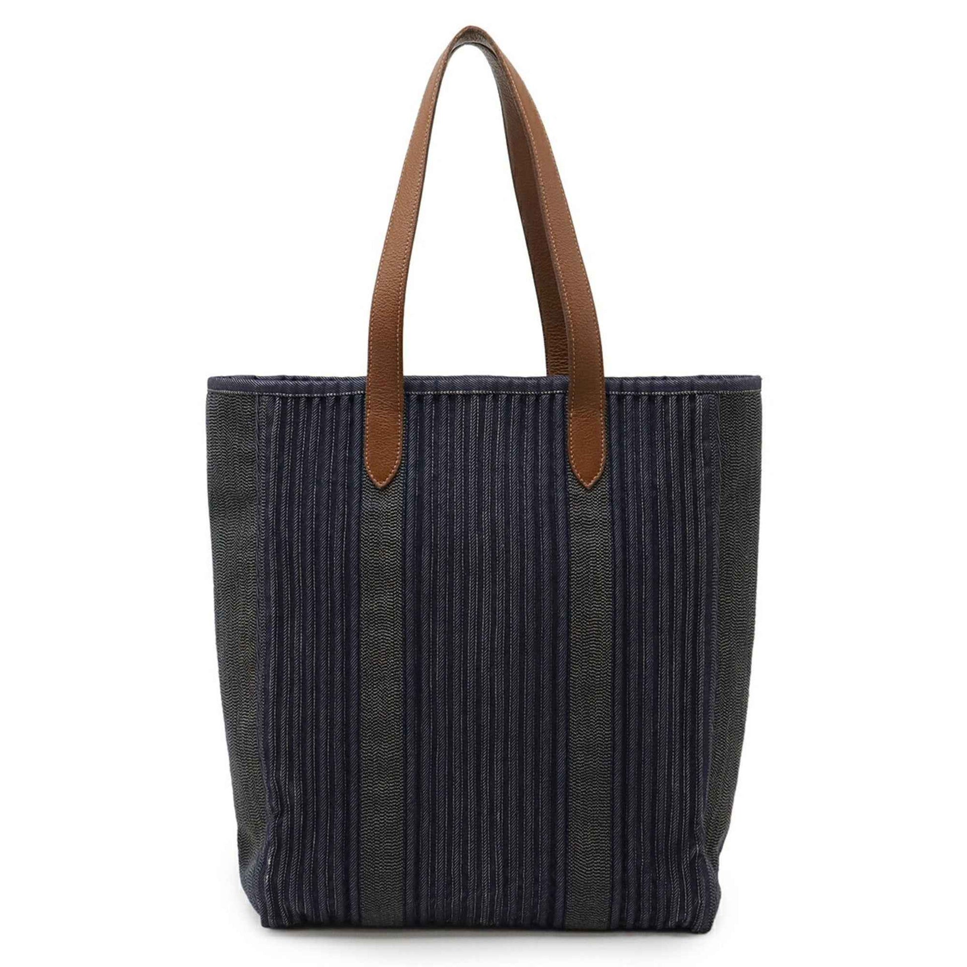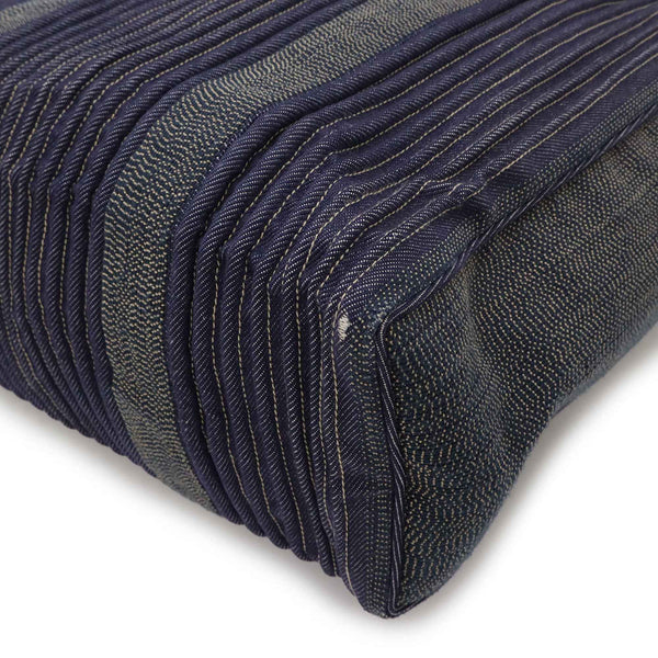 HERMES Calicut Tote/Shoulder Bag, Pleated Denim and Leather, Navy Blue, Brown, □L Stamped