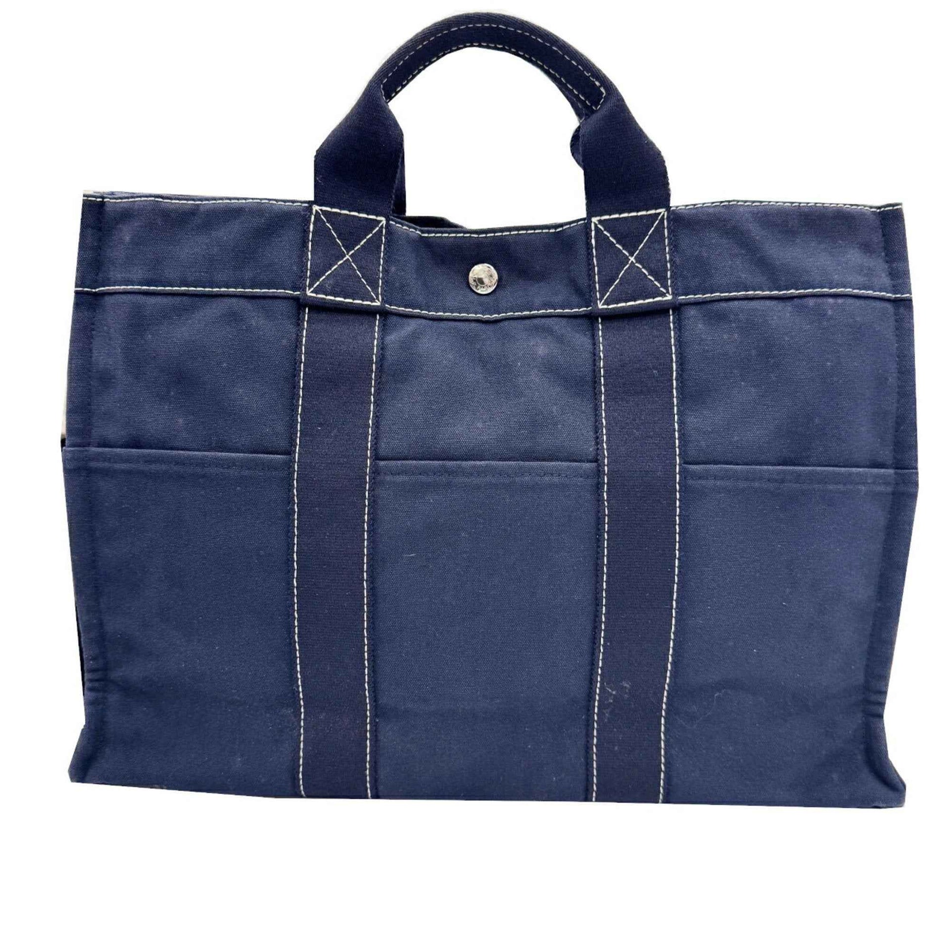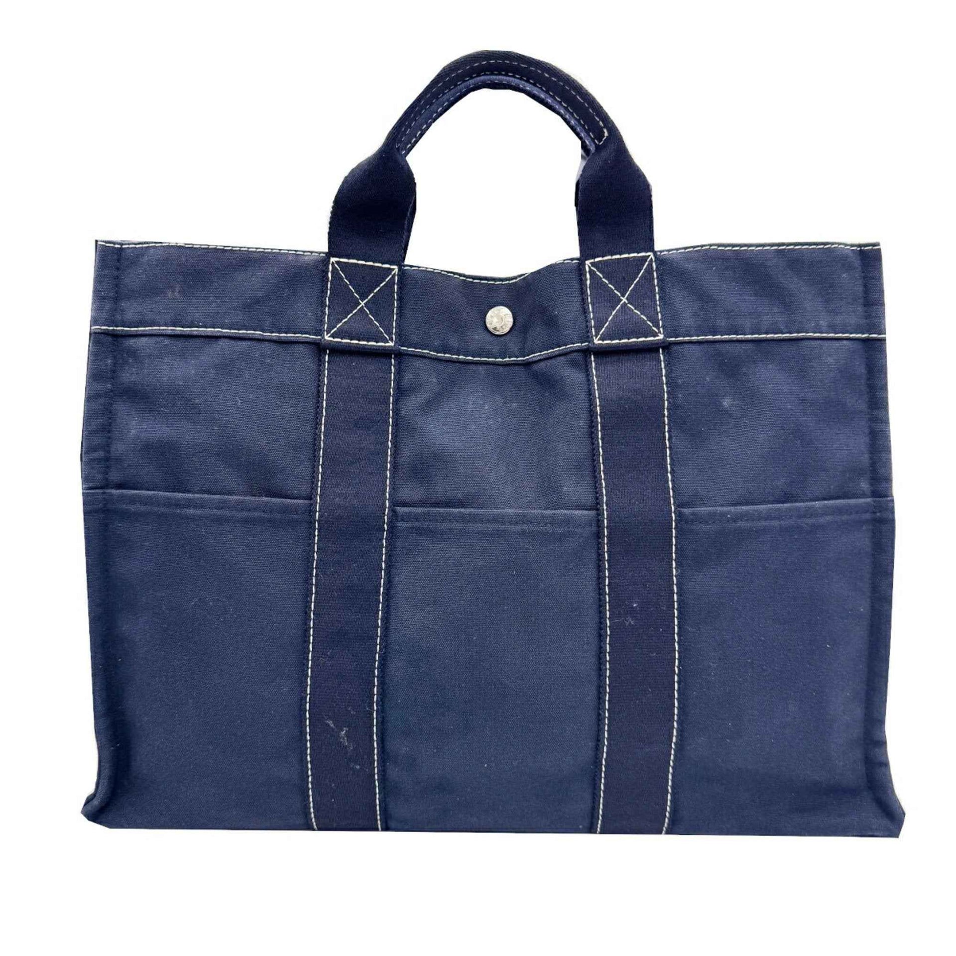 HERMES Deauville MM Canvas Navy Handbag for Men and Women
