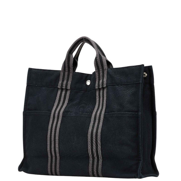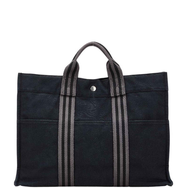Hermes Four Tote MM Bag Handbag Black/Gray Canvas Women\'s HERMES