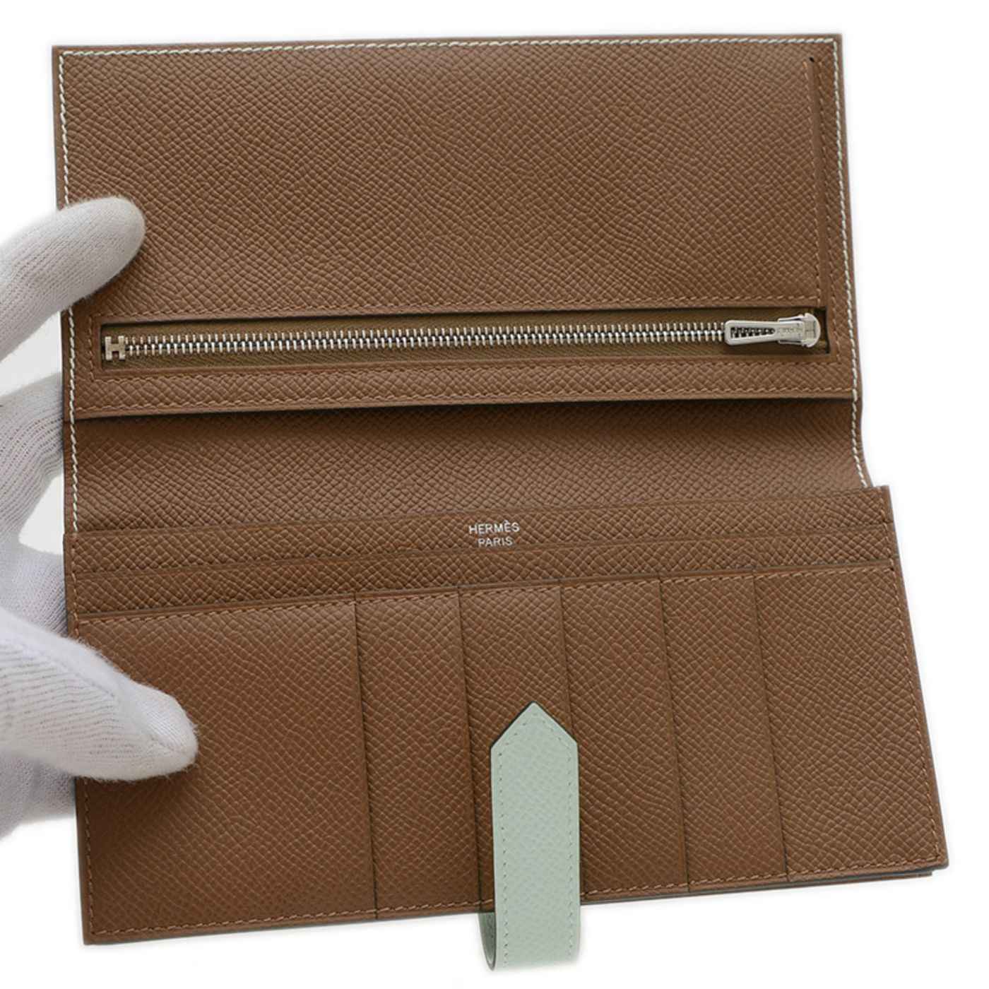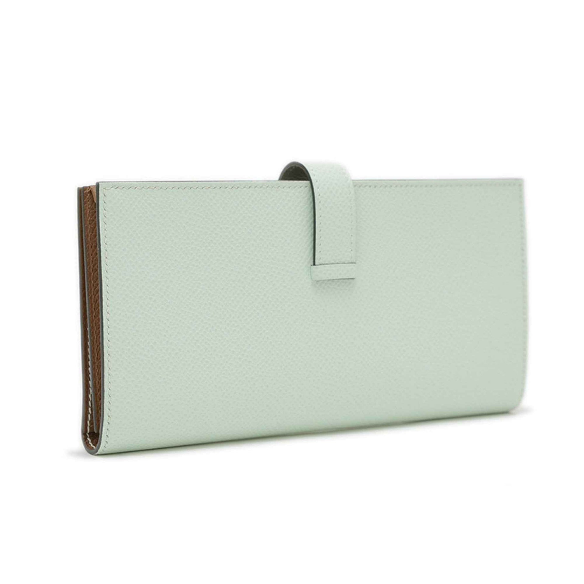Hermes Hermès Bearn Soufflet Long Wallet in Epson Vert Peppermint with Silver Hardware and K Stamp