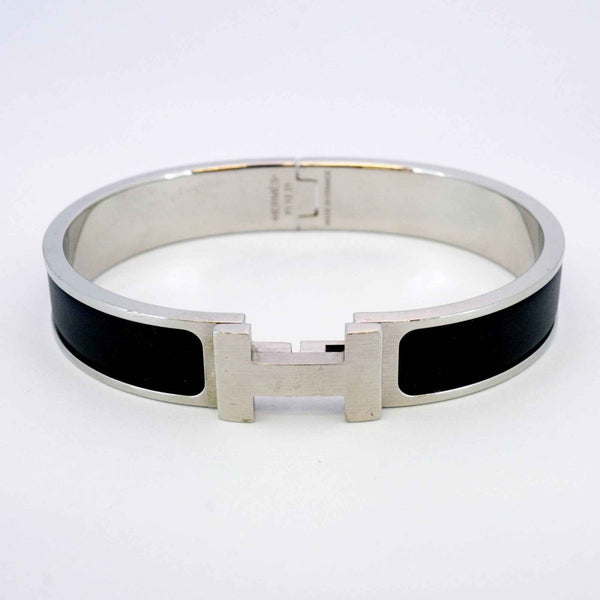 Hermes Hermès Click-Clack PM Bangle in Metal, Silver and Black for Men