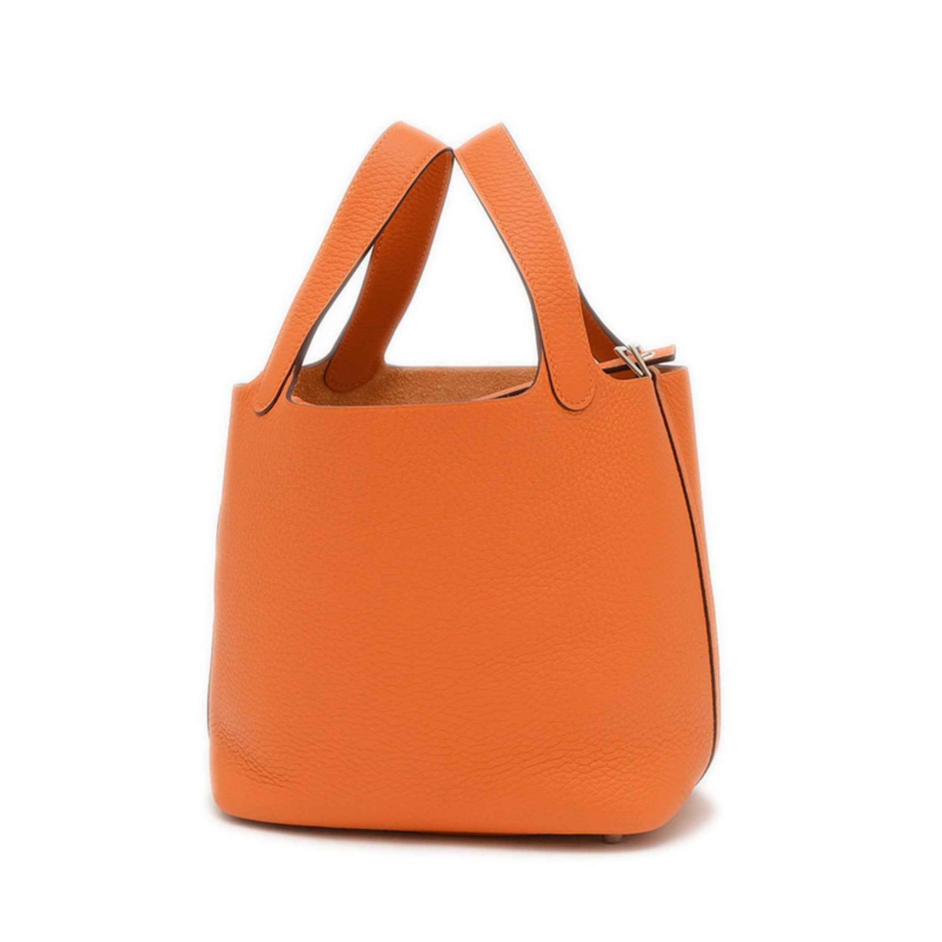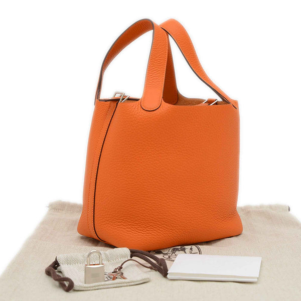 Hermes Hermès Picotin Lock PM 18 Handbag in Taurillon Orange with Silver Hardware and Double Stamp