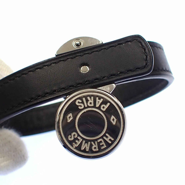 Hermes Hermès Serie Looping Bracelet in Metal and Leather, Black, for Men Women