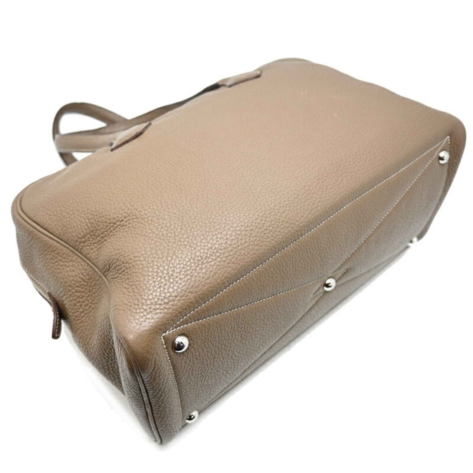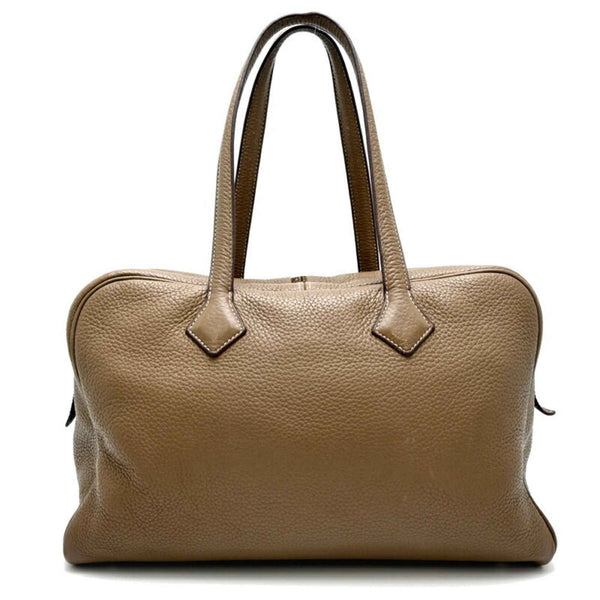 Hermes Hermès Victoria 35, 2013 (palladium) Boston bag in Taurillon Clemence Etoupe leather, with a Q stamp.