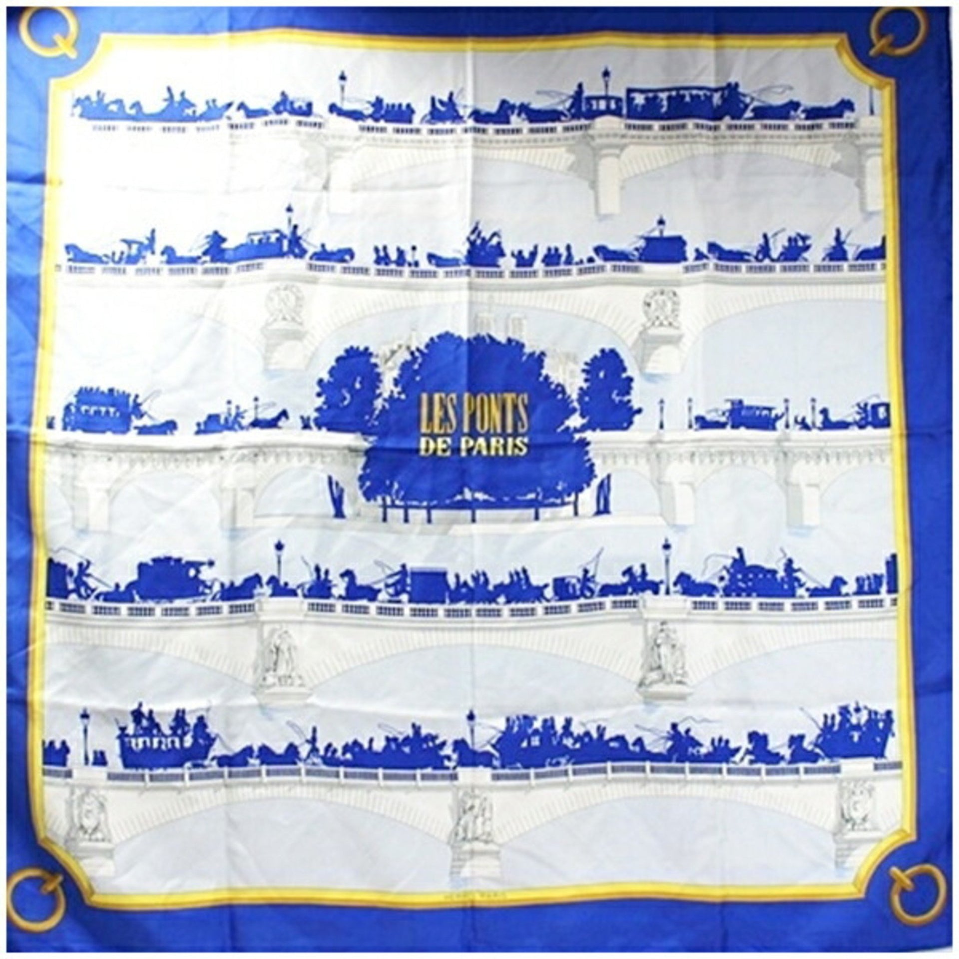 Hermes Silk Scarf Muffler Carre 90 LES PONTS DE PARIS Bridges of Paris HERMES Women\'s