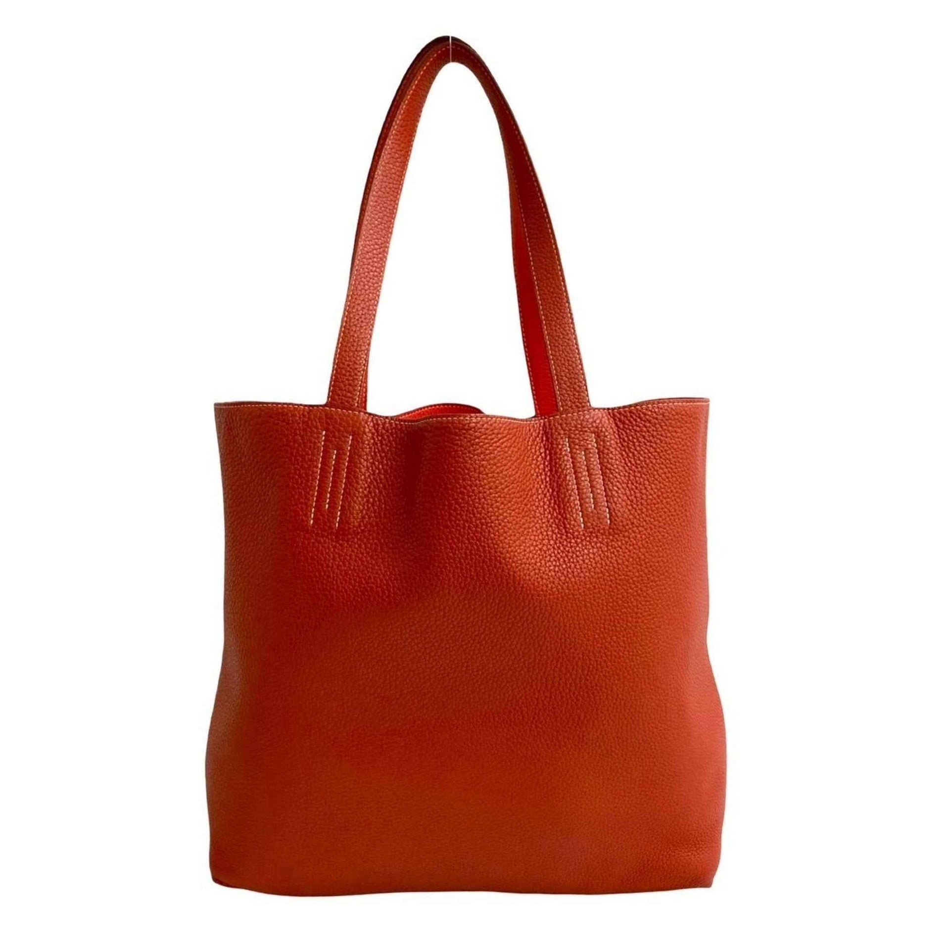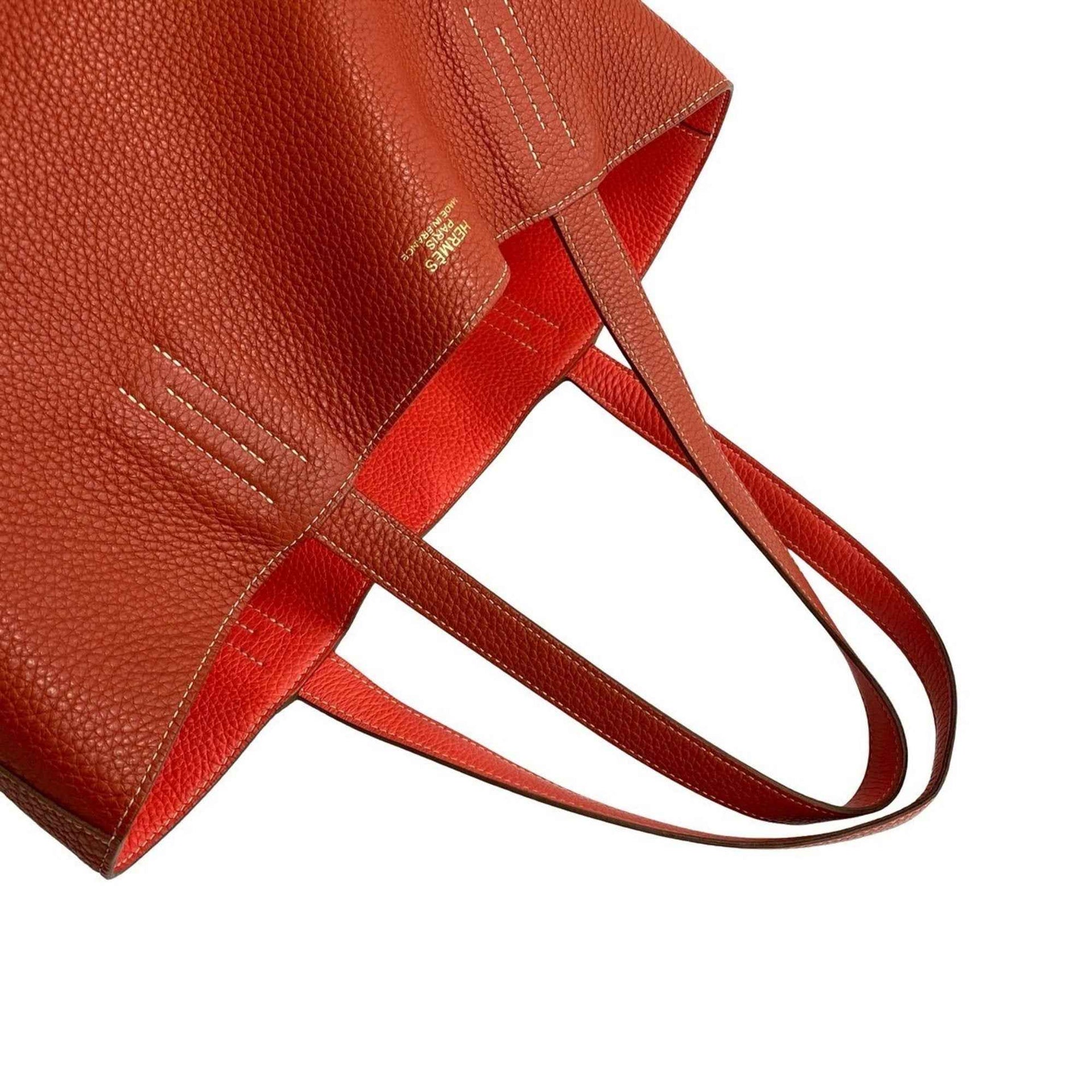 □R engraved HERMES Double Sens 45 Taurillon Clemence leather tote bag/handbag, pink, 32872