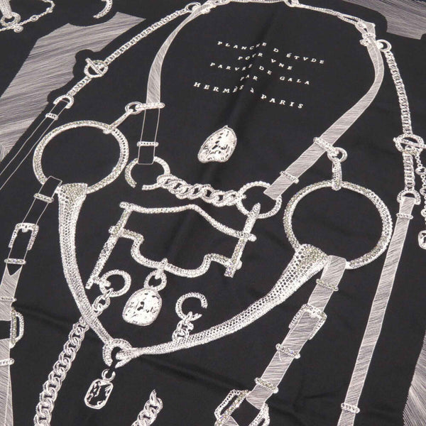 Unused Hermès Carré 90 PLANCHE D ETVDE Formal Etude Bag, Silk with Rhinestones, Black, 1565 HERMES