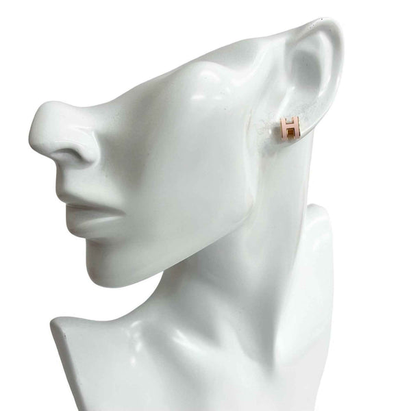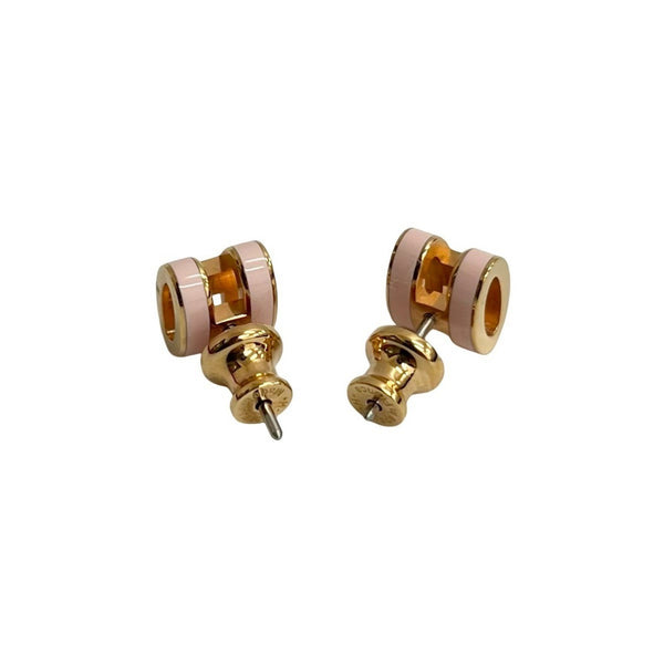 HERMES Mini Pop H Logo Earrings, Women\'s, Gold and Pink, 11936