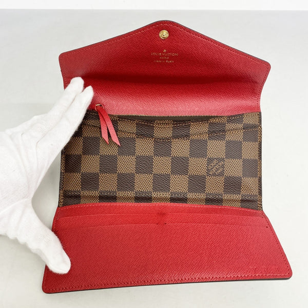Louis Vuitton Damier Portefeuille Josephine Tri-fold Wallet N63543 Red Ebene Women\'s