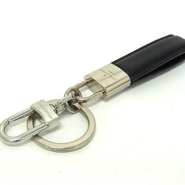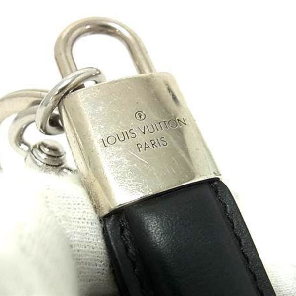 LOUIS VUITTON Dragonne LV Padlock Keychain M00745 Black Leather and Metal Men\'s Key Ring