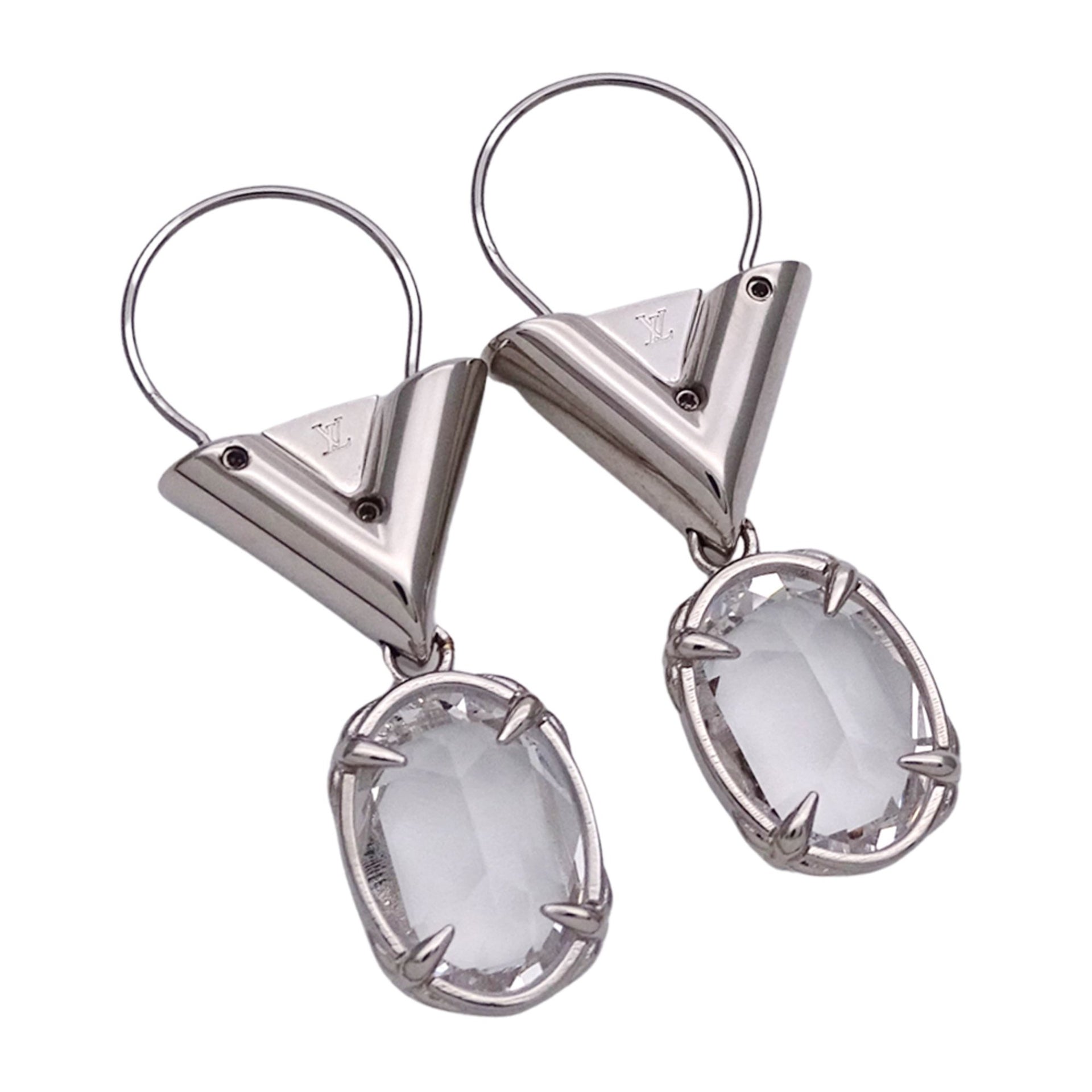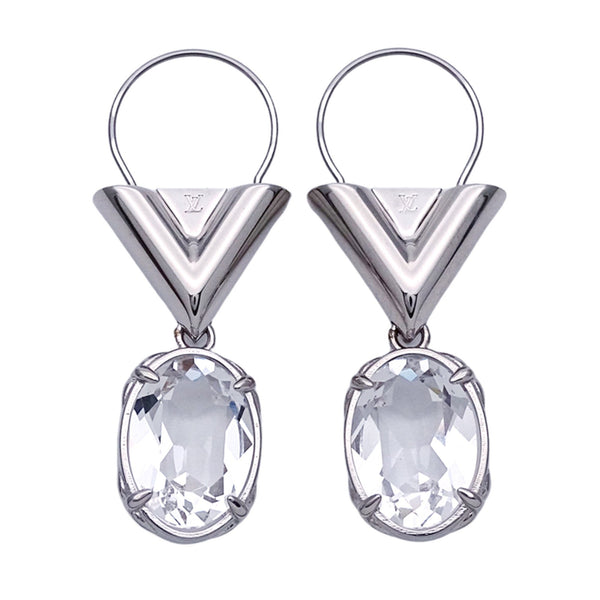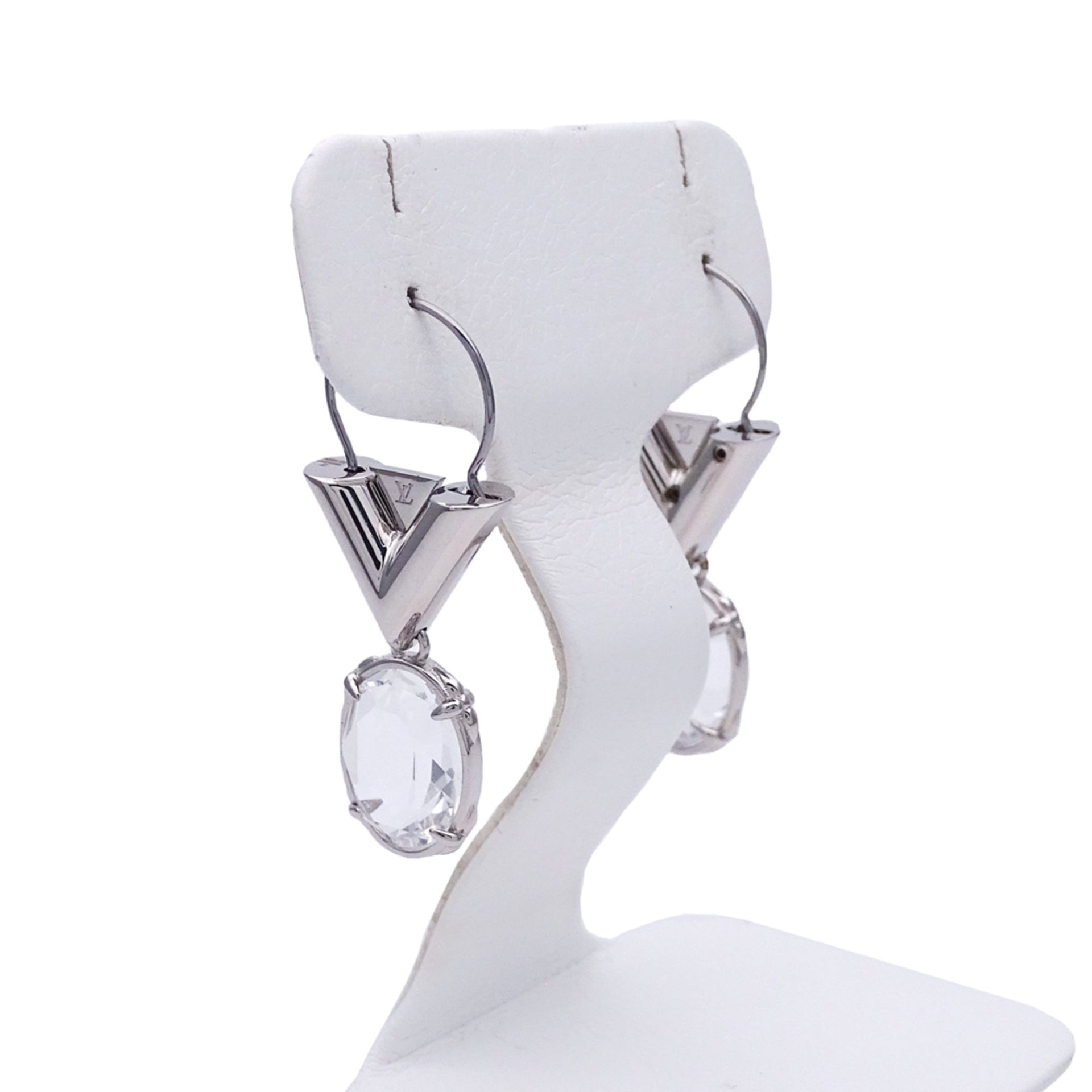 Louis Vuitton LOUIS VUITTON Earrings Women\'s Brand Metal V4 Silver M02297 Essential V Beaded Hoop