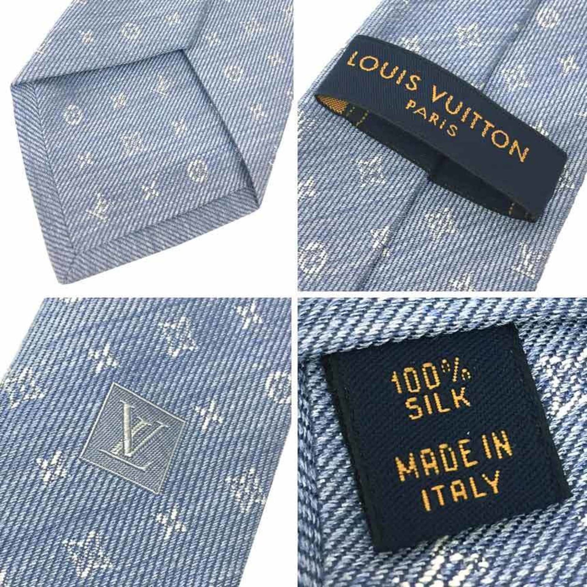 LOUIS VUITTON Louis Vuitton Tie Cravate Monogram M77088 Blue Light 100% Silk Men\'s