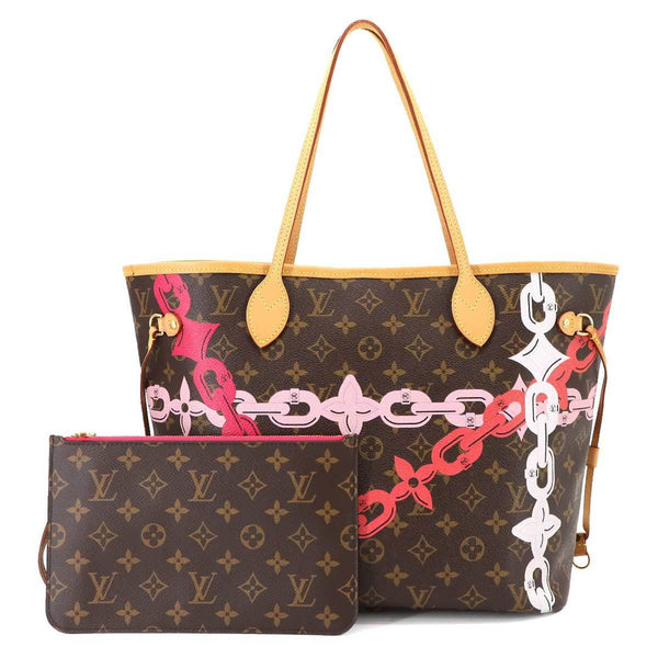 Louis Vuitton Monogram Bay Neverfull MM Tote Bag, Brown and Fuchsia, M41991, Gold Hardware