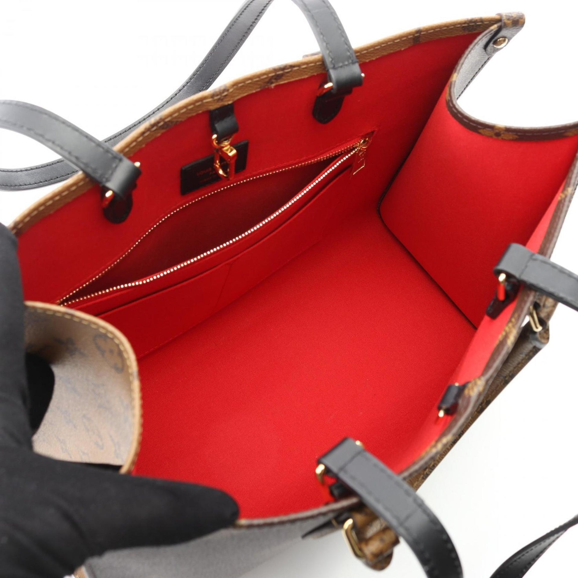 Louis Vuitton On the Go MM Tote Bag in Coated Canvas and Leather with Monogram Giant Reverse Pattern, Women\'s, Brown Beige, M45321