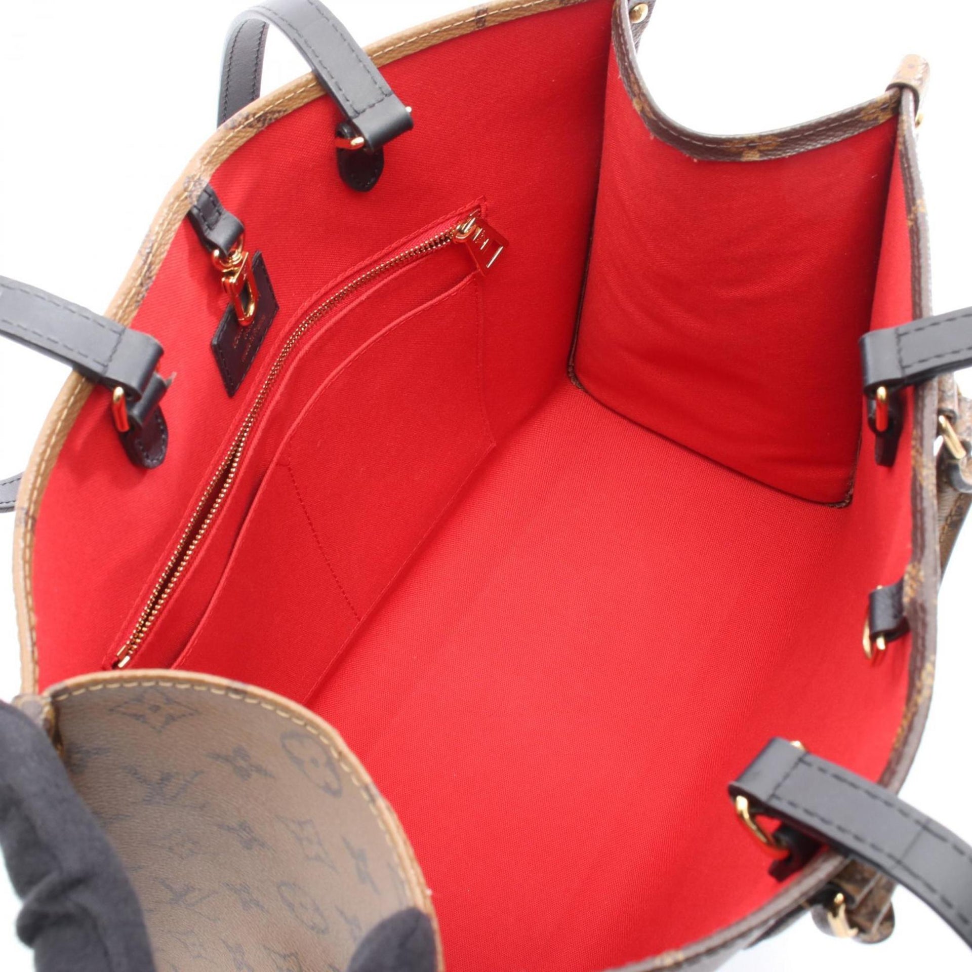 Louis Vuitton On the Go MM Tote Bag, PVC-Coated Canvas and Leather, Monogram Giant Reverse, Women\'s, Brown/Beige, M45321