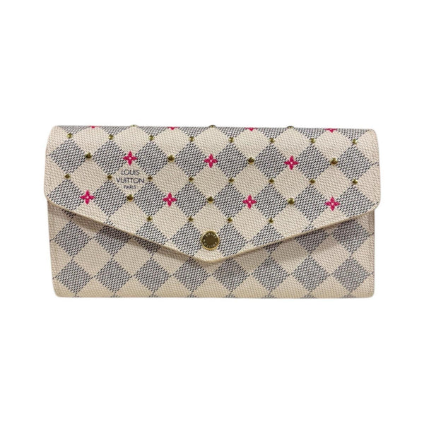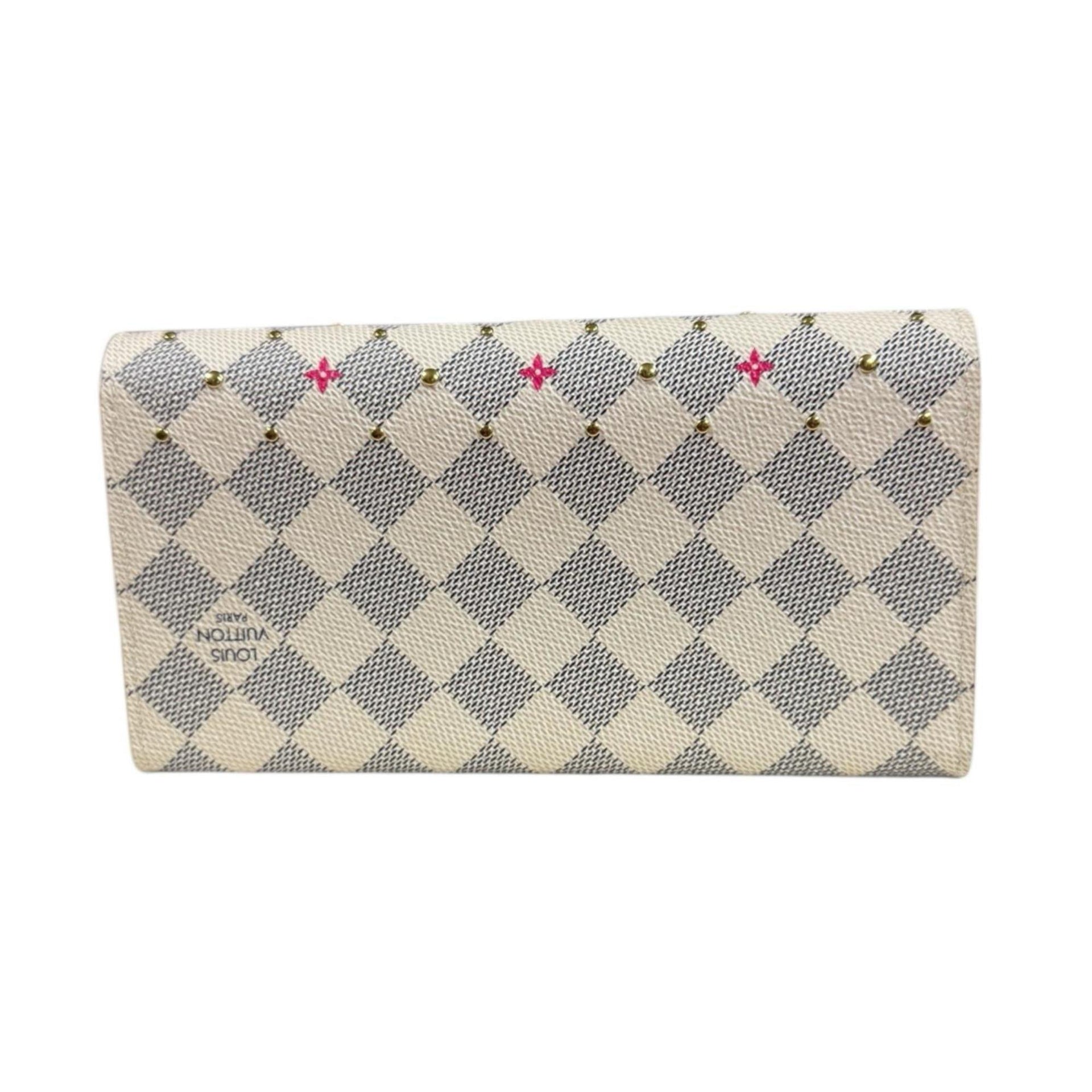 Louis Vuitton Portefeuille Sarah Damier Azur Studded Long Wallet, Canvas, M45296, Women\'s, LOUIS VUITTON