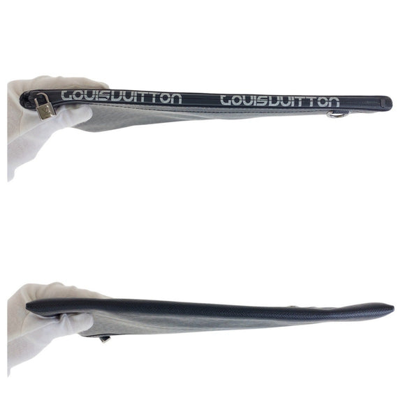 LOUIS VUITTON Taiga Pochette Apollo in black with silver hardware and leather, M30086, suitable for men.