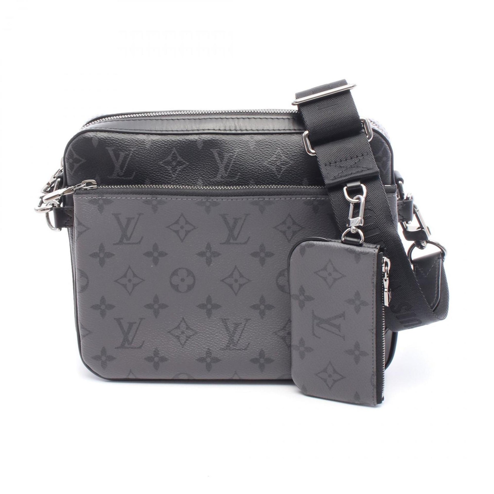 Louis Vuitton Trio Messenger Shoulder Bag in Coated Canvas and Leather, Monogram Eclipse Reverse, Men\'s, Black Gray, M69443
