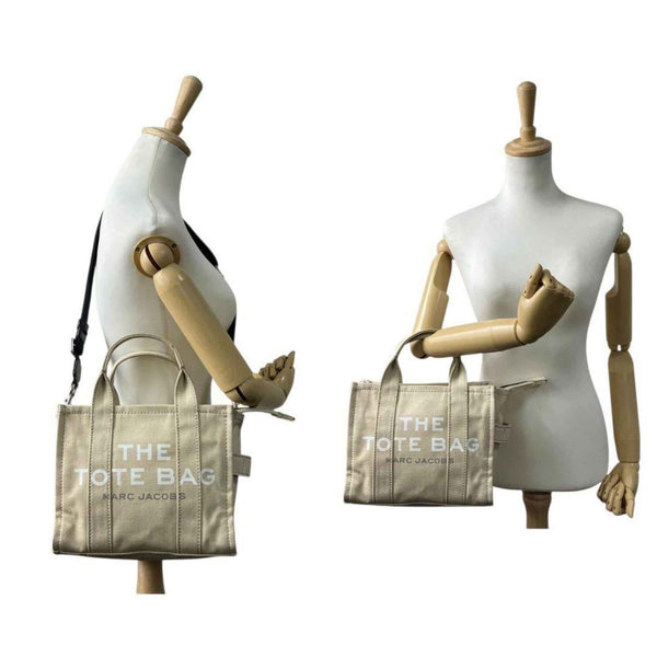 Marc Jacobs Beige The Tote Bag, 2-Way Handbag, Shoulder Crossbody Silver Hardware, Canvas, MARC JACOBS T6