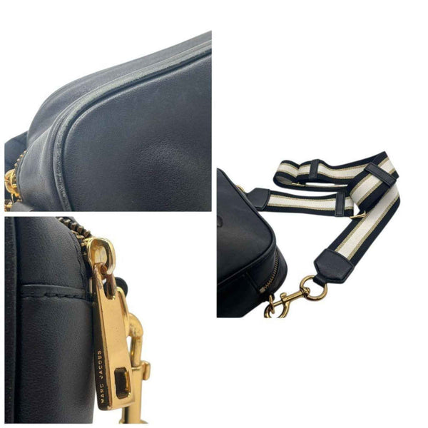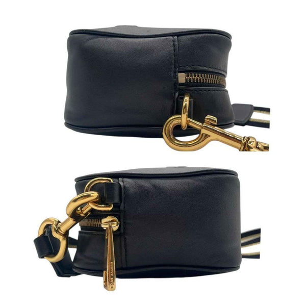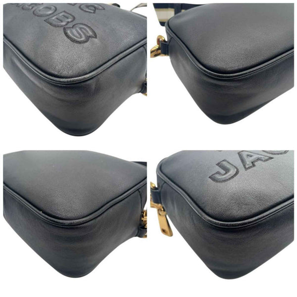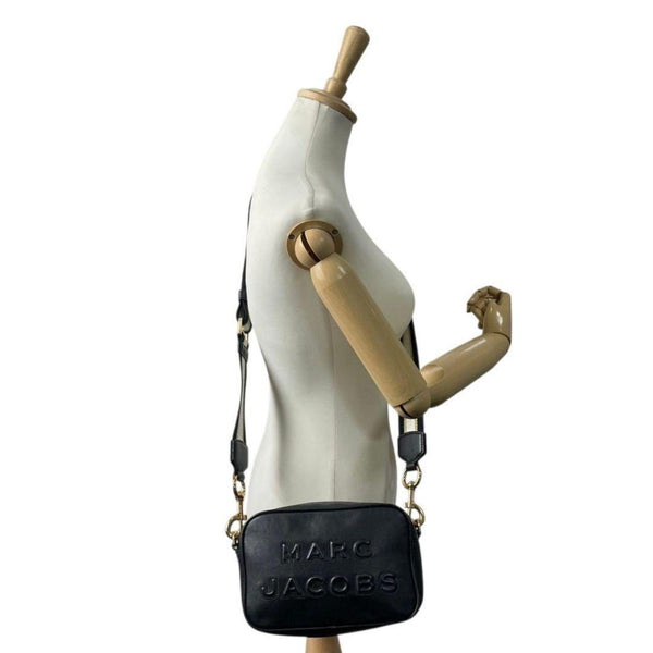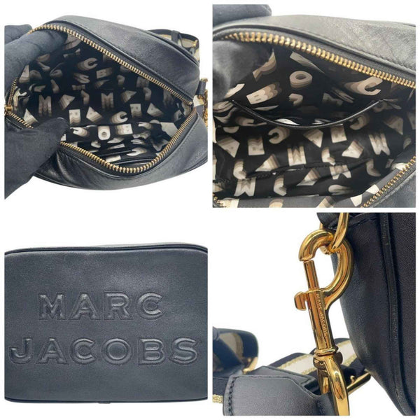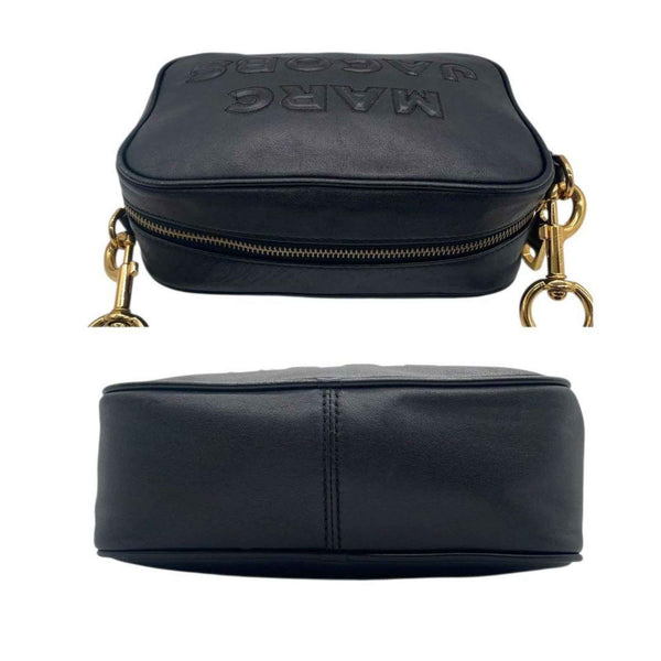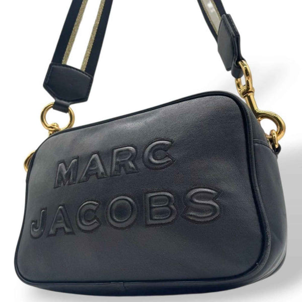 MARC JACOBS shoulder bag, black leather with large logo, crossbody strap, gold hardware, logo plate, s88