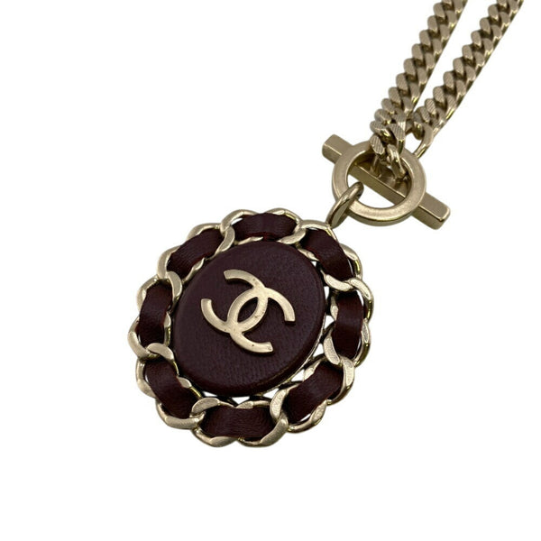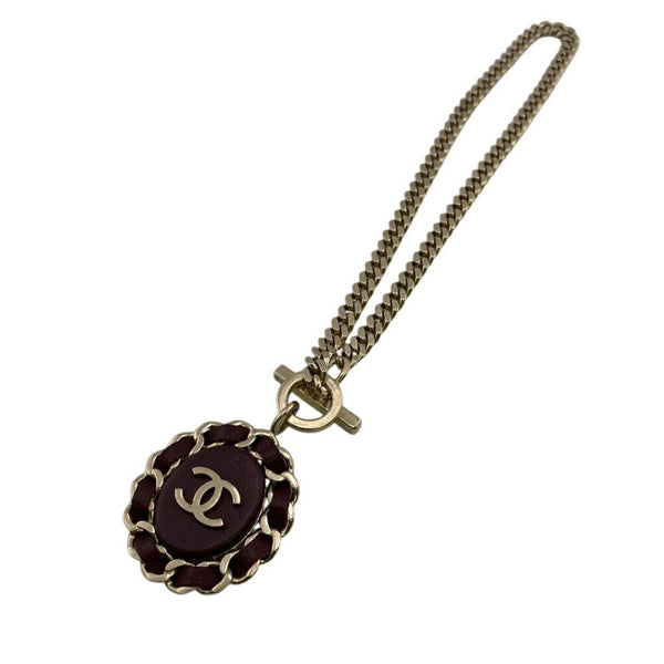 CHANEL B16B Oval Chain Coco Mark Necklace in Wine Red