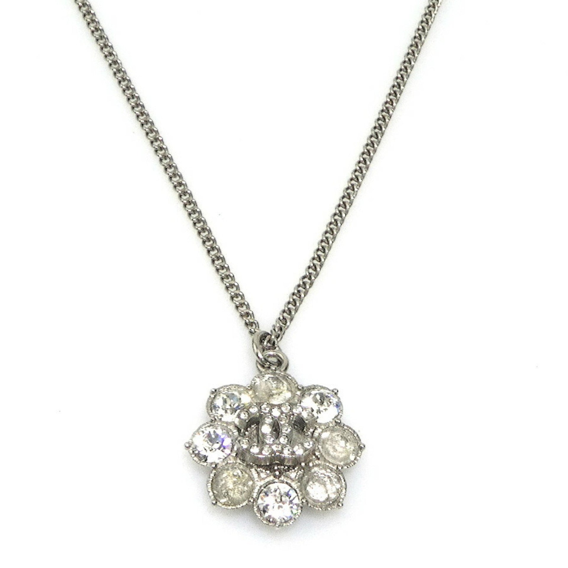 CHANEL Coco Mark Metal Rhinestone Necklace Silver Women\'s e60985a