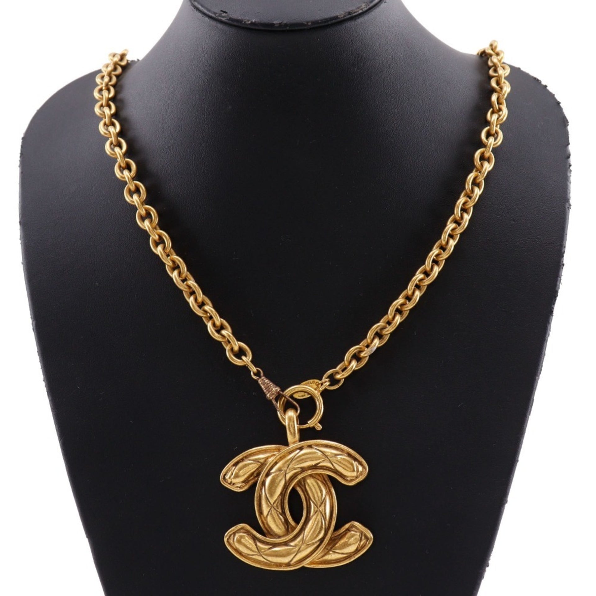 CHANEL Coco Mark Necklace, Matelasse, Gold Plated, Approx. 163.3g, Women\'s