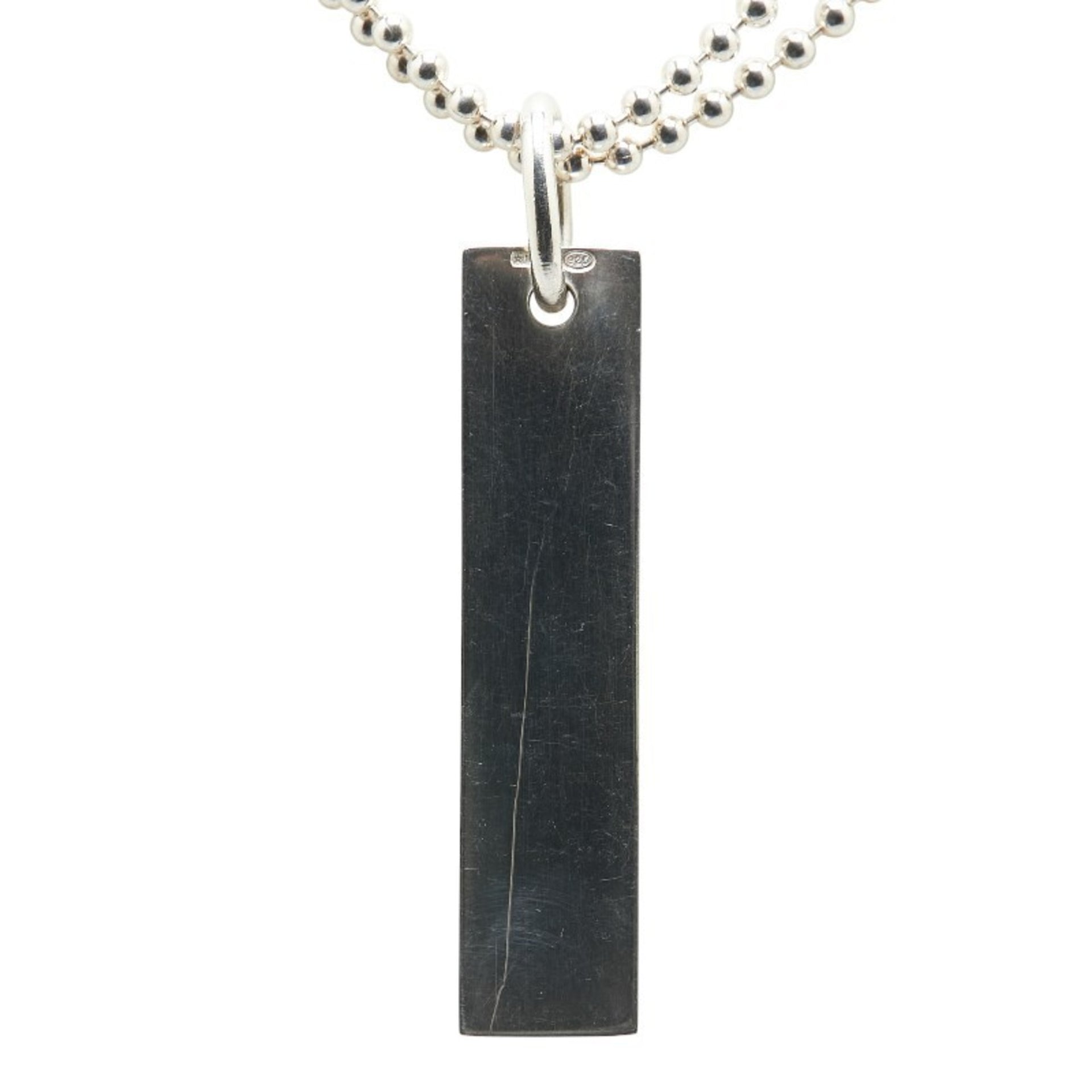 Gucci logo plate double ball chain necklace in SV925 silver for women.