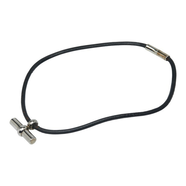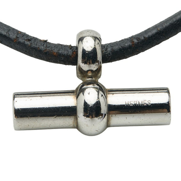 Hermes Grennan Necklace Choker in Silver, Black Metal and Leather for Women