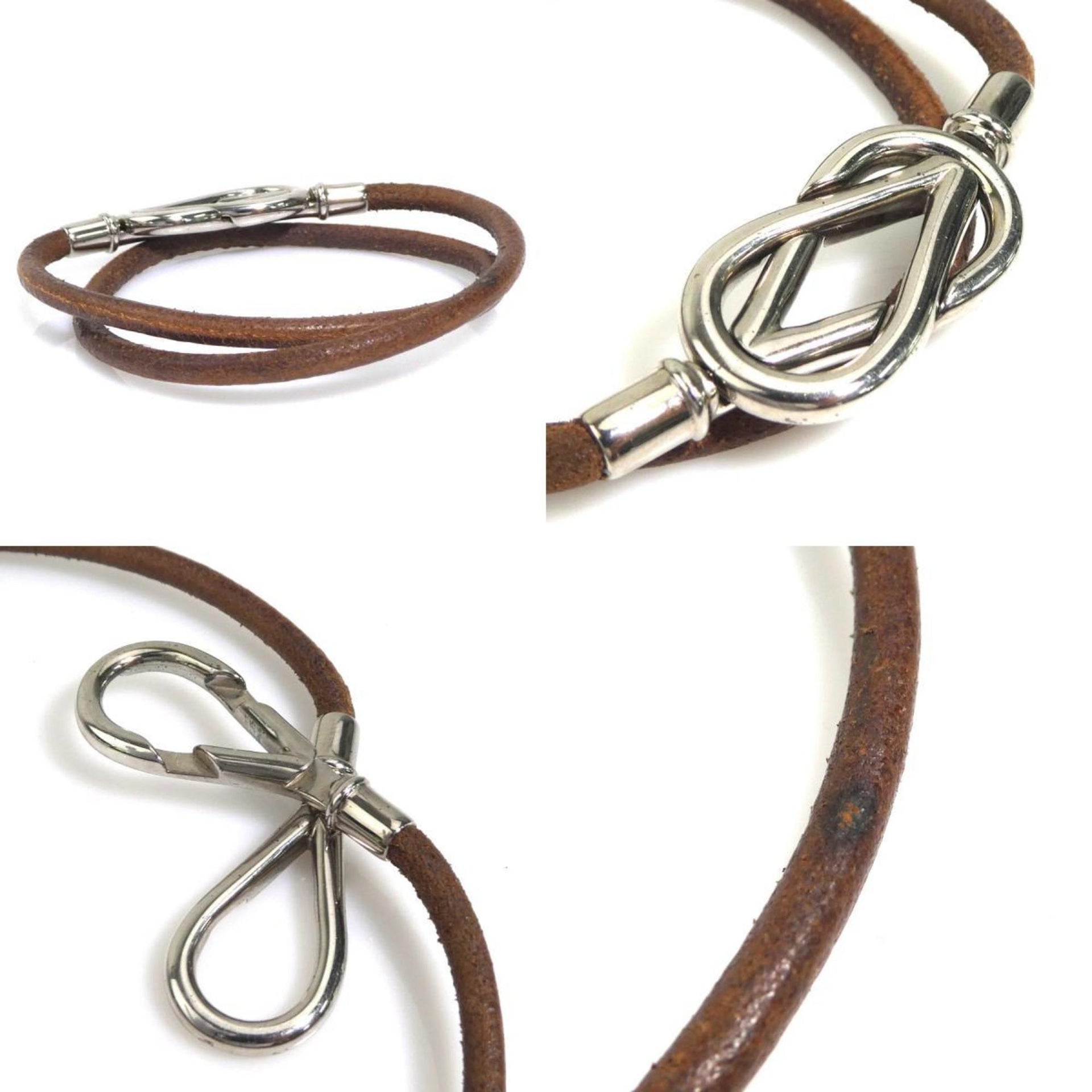 Hermès HERMES Bracelet Choker Necklace, Leather, Metal, Brown, Silver, Women\'s, e61088a