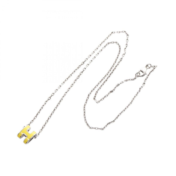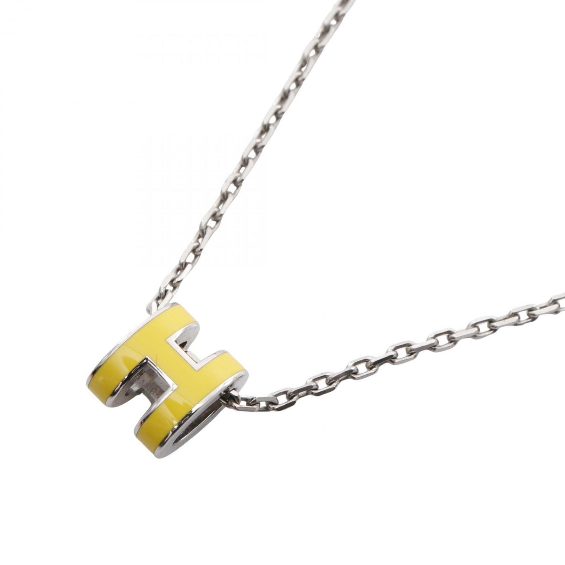 Hermes Hermès Mini Pop H Lime Necklace in Stainless Steel, Silver and Yellow.