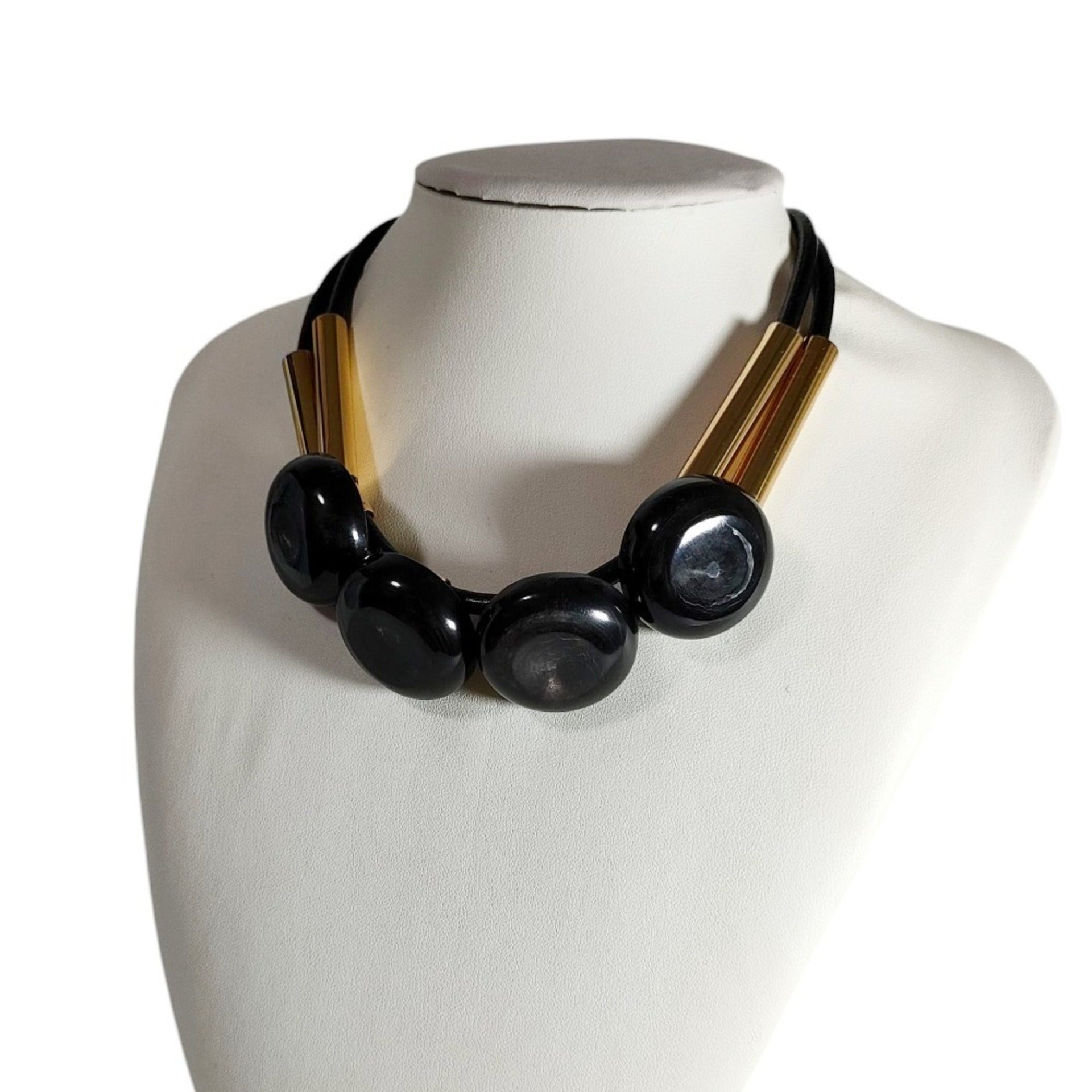 MARNI Necklace Choker Accessory with Box, Black x Gold, Women\'s